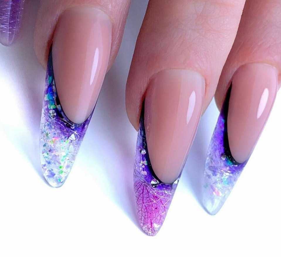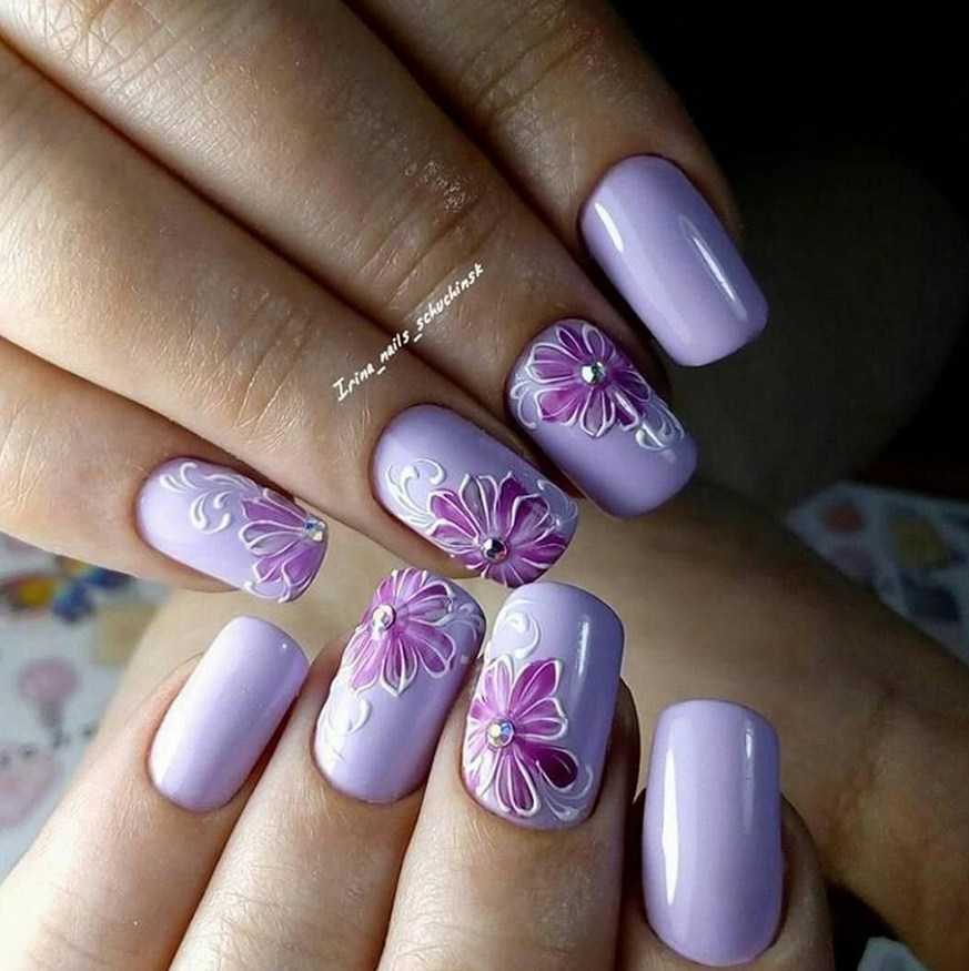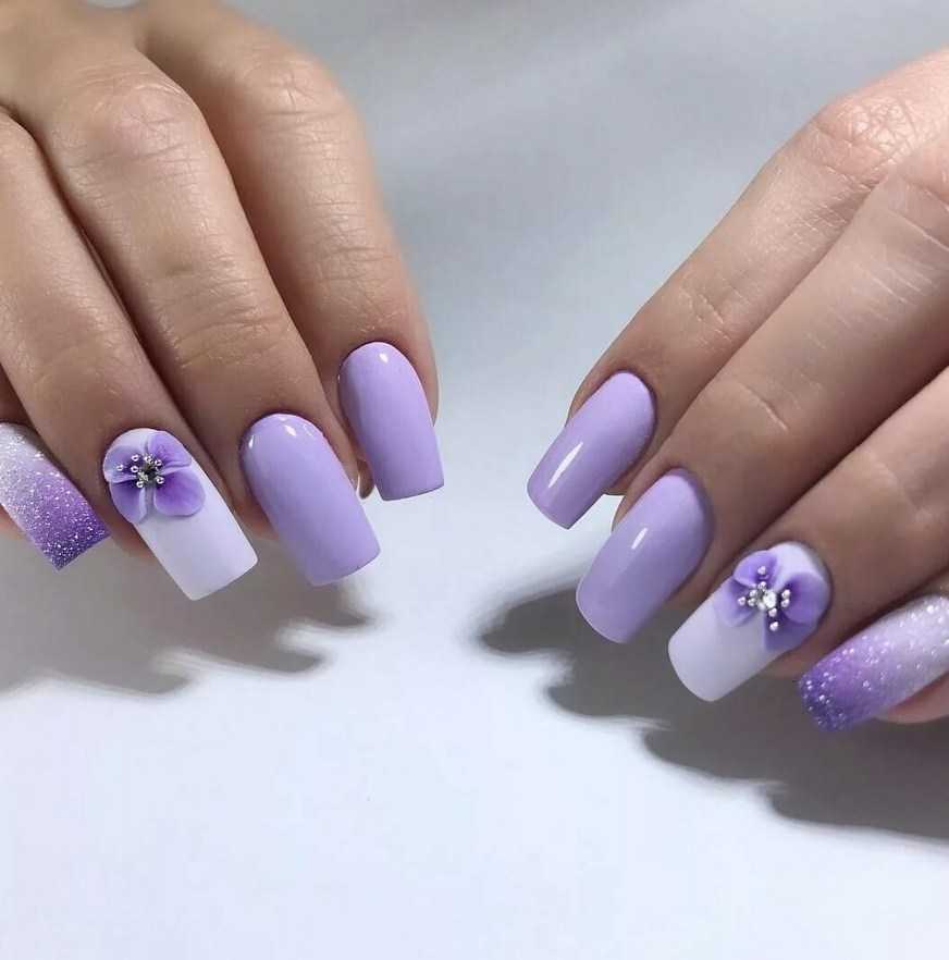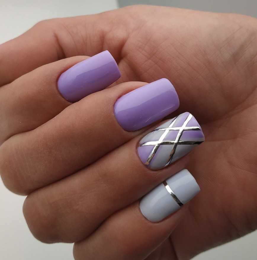 Оттенки лаванды, сирени, фиолетового способы корректировать недостатки ногтевых пластин и отлично подходят для любой их длины.