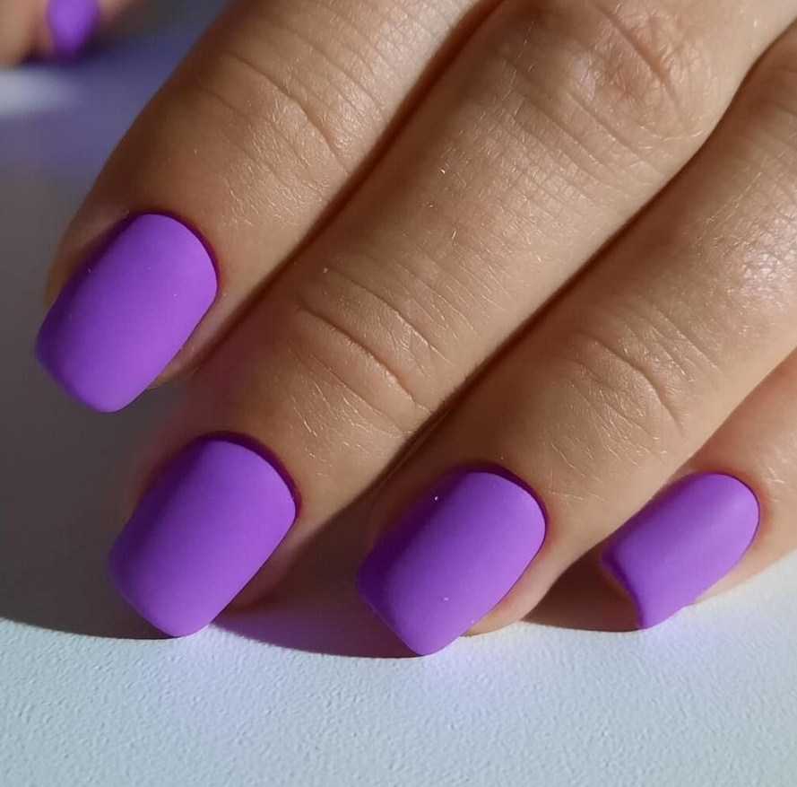 Фиолетовый однотонный маникюр 2021 модные тенденции фото