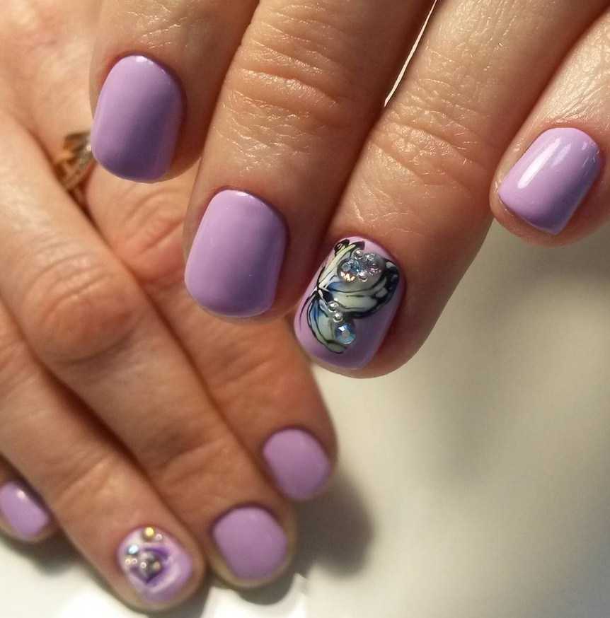 Маникюр сиреневого цвета на короткие ногти
