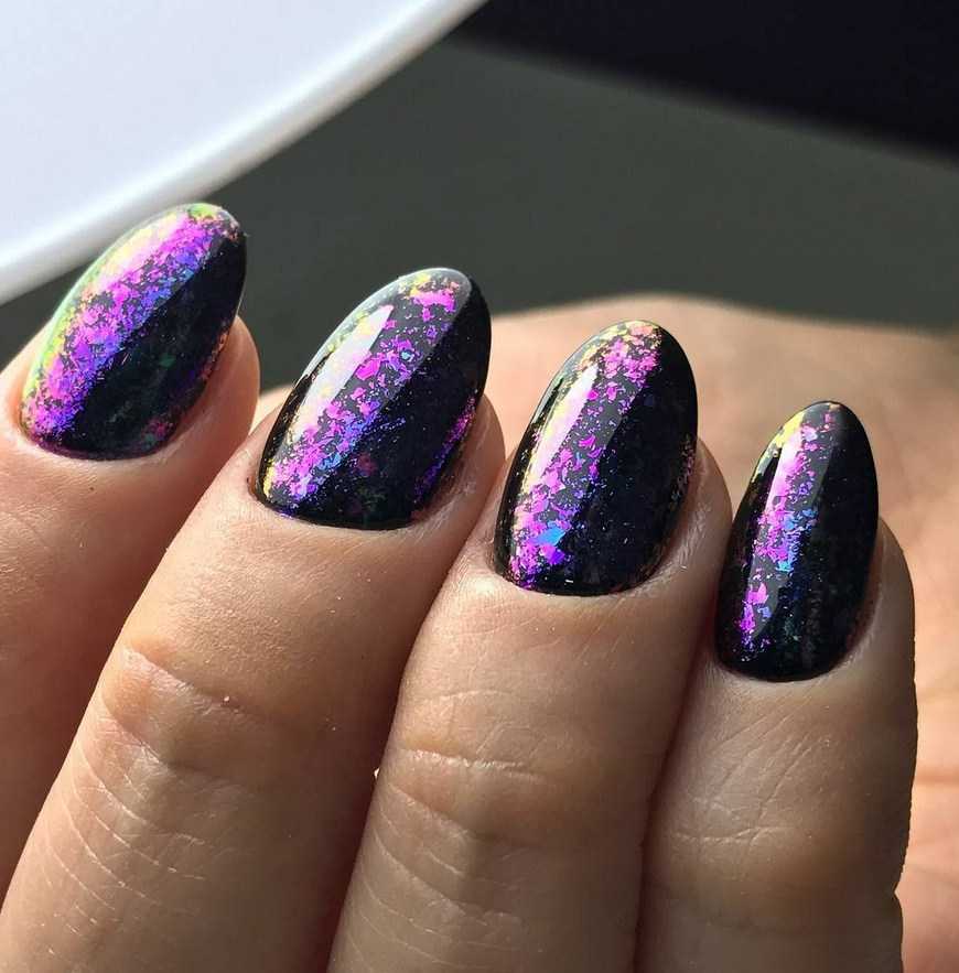 Для большей эффектности, втирку объединяют с блестками, стразами. Чередуют с матирующим топом. Очень интересно смотрится техника градиент или плавный переход от зеркальной поверхности к матовой на одной пластинке.