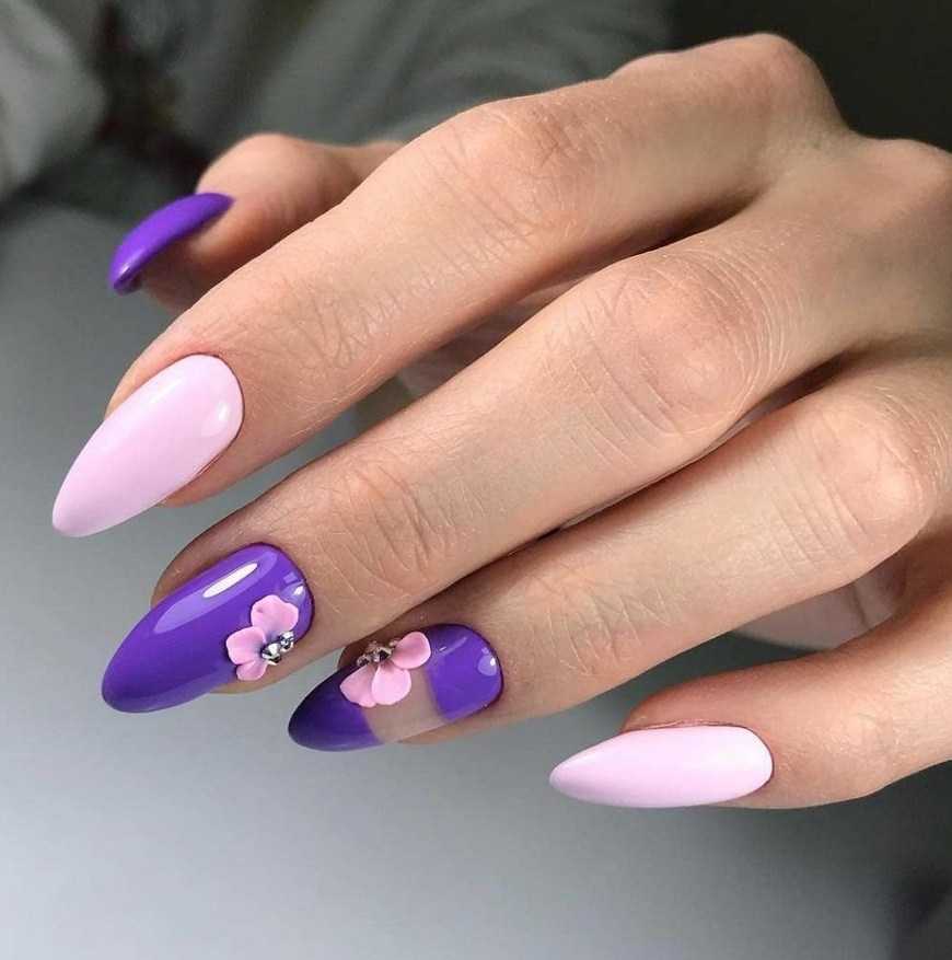 Розовый просто создан для сиреневых тонов. С их помощью можно воплотить в жизнь нежный романтический дизайн маникюра. Стоит руководствоваться правилом — чем темнее и интенсивнее розовый тон, тем темнее и сочнее должен быть фиолетовый.