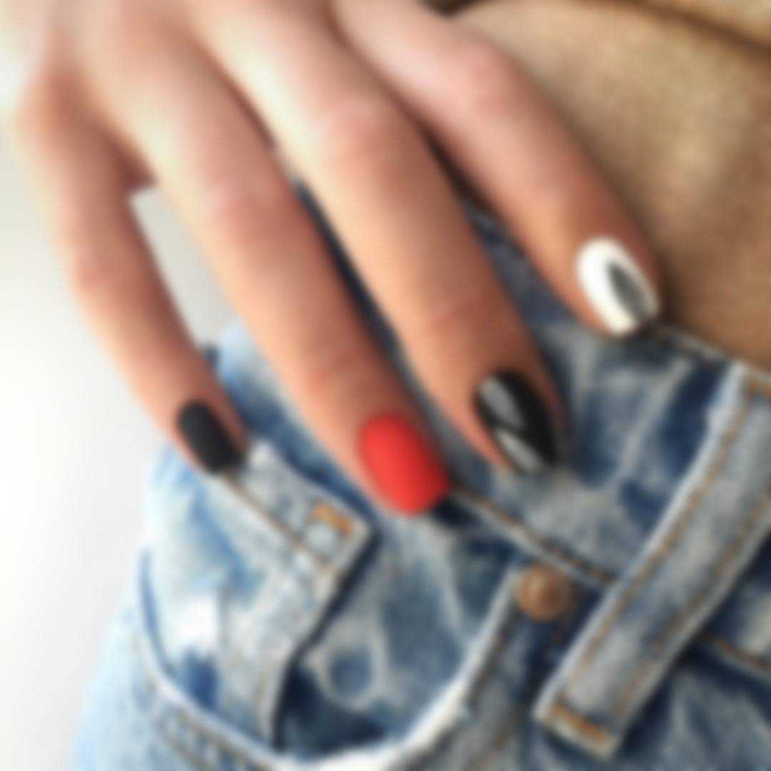 - Несколько ногтей могут быть глянцевыми, а несколько матовыми.