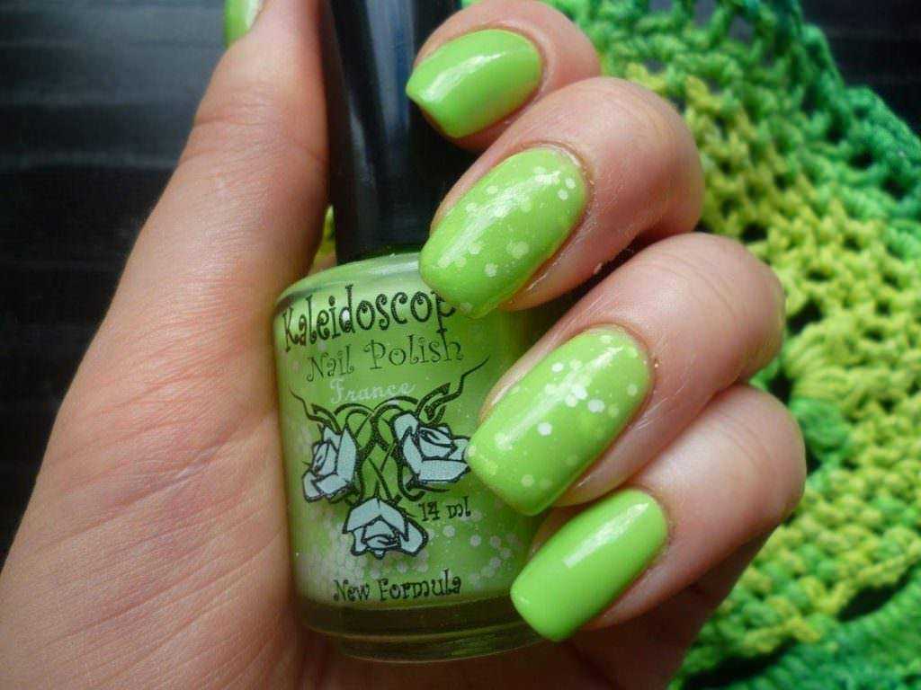 После холодной зимы хочется чего-то яркого и сочного, зеленый маникюр с желтоватыми оттенками, это то, что нужно к золотистому загару.