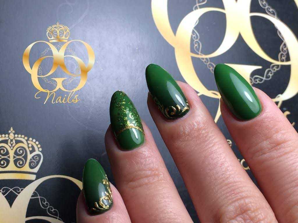 Белую улыбку классического френча можно заменить на любой оттенок зеленого, или комбинацию с оттенками.