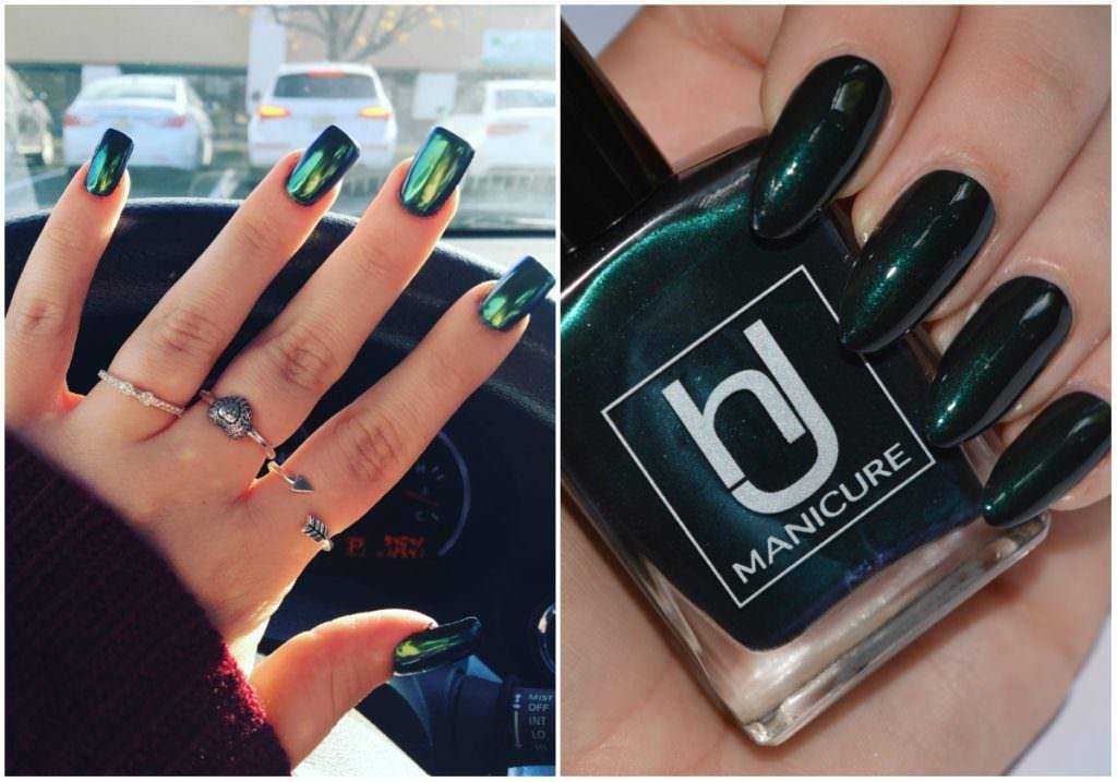 Для маникюра кошачий глаз предпочтительнее использование насыщенных цветов: изумрудного, малахитового, глубокого зеленого и др. Довольно оригинально будет смотреться их сочетание с матовым маникюром или рисунком на нескольких пальчиках.