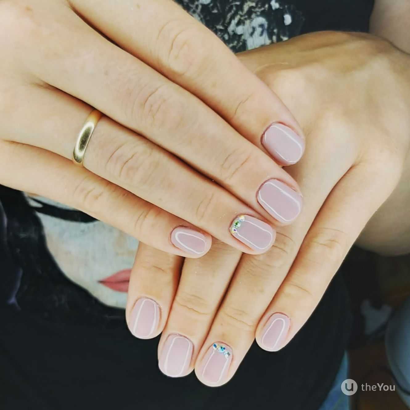 Станет украшением коротких ногтей однотонный бежевый оттенок, матовый и глянцевый. Не рекомендуется наносить слишком много элементов декора. Если ногтевая пластина сильно укорочена — достаточно подчеркнуть ее форму, выбрав маникюр с минималистичными и геометрическими фигурами — полосками, линиями, точками, либо украсить пару ногтей небольшим количеством страз.