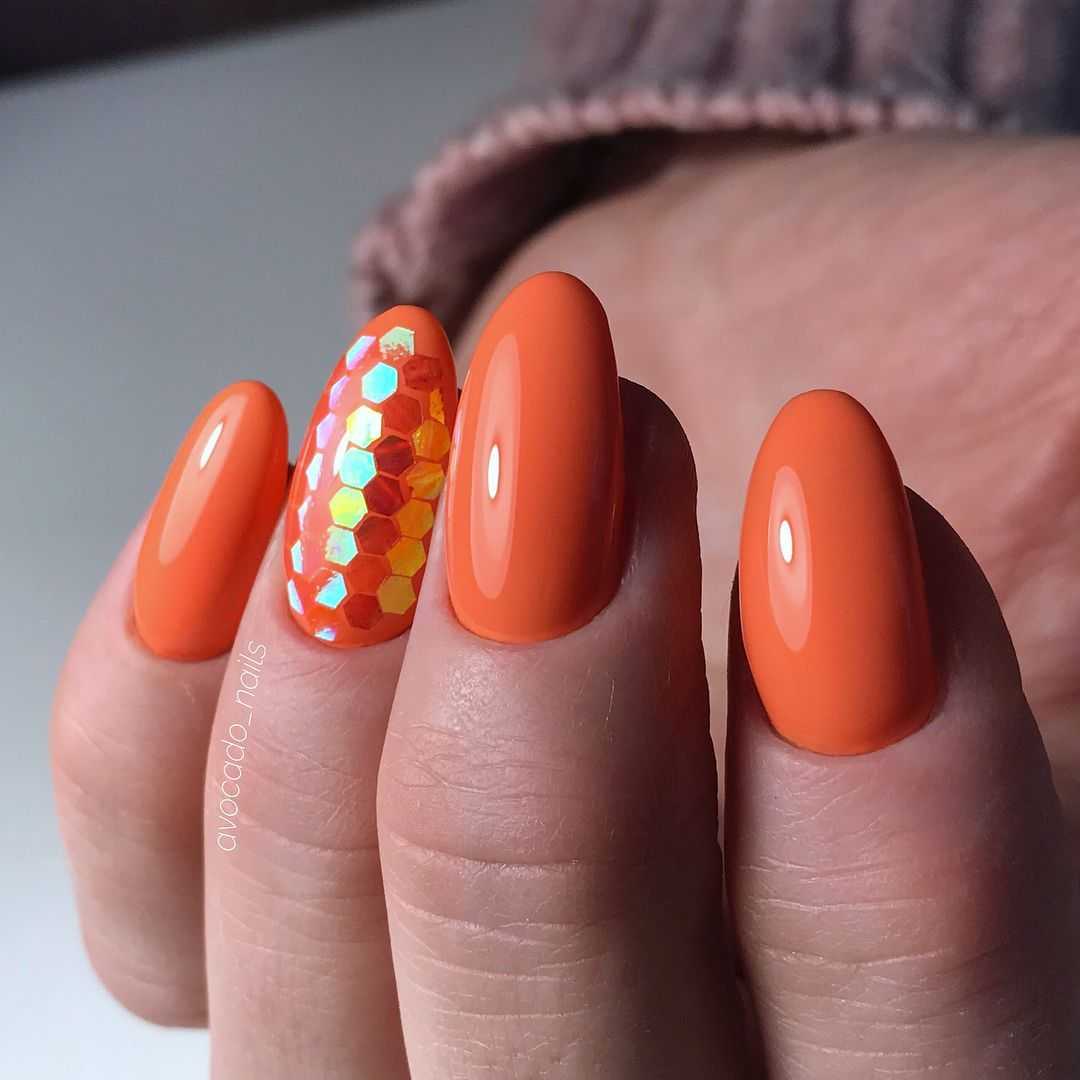 Хотите сделать маникюр более праздничным и блестящим? Добавьте глиттер или блестки. Можно выделить один ноготь, делая блестящий акцент. Или добавить глиттер только на лунку, кончик каждого ноготка.