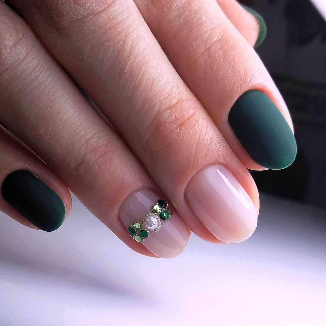 - матовые. Кончики ногтевой пластины оставляют глянцевой, зато всё основание ногтя покрывается матовым шеллаком;