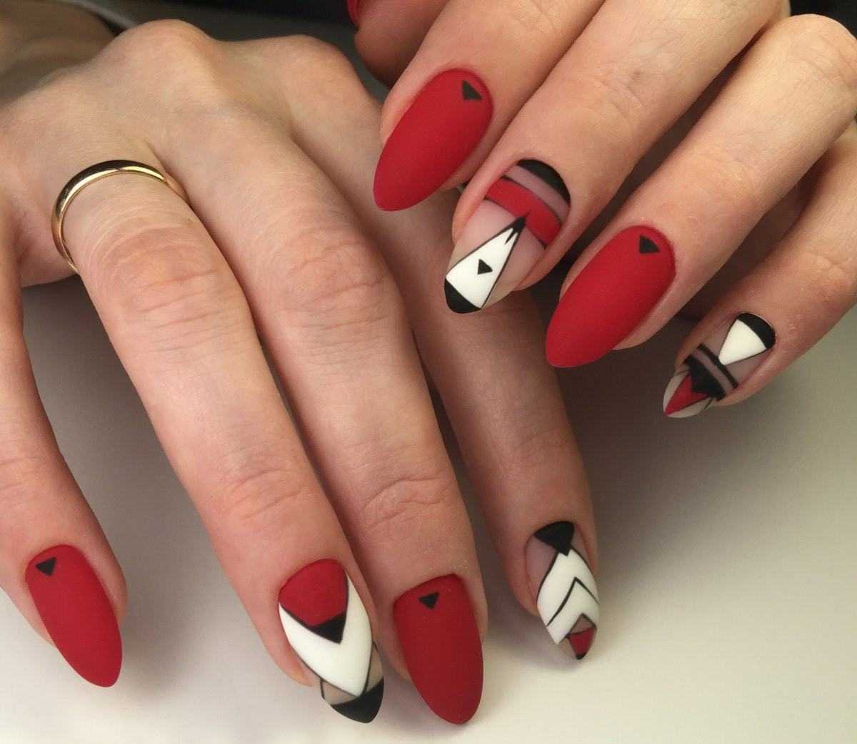 Лучшими тонами треугольников, которые используют опытные мастера для дизайна, сегодня считаются золотой, серебряный, черный, белый и темно-красный. Основа маникюра может быть самой разнообразной
