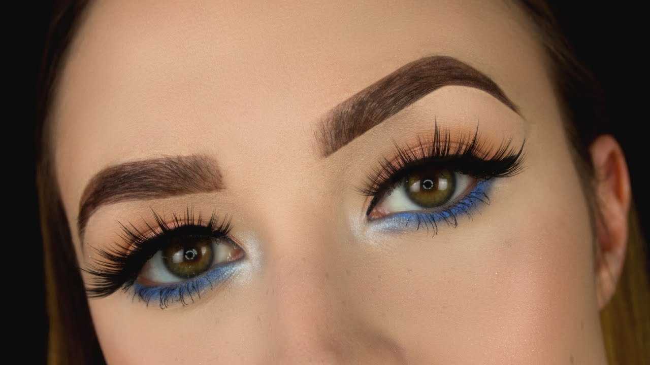 Из доступных цветов чаще всего под синий подойдет вся палитра синего, фиолетовый, черный, белый, золотой, серебро, голографический, в некоторых случаях зеленый. Комбинация цветов приветствуется, поэтому база макияжа существенно расширяется по возможности выбора.
