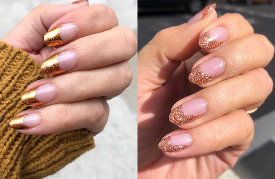 К самым модным идеям относятся: аквариумный френч, где золото будет в виде кусочков, растяжка, гнущаяся золотая лента или френч с глиттером. Золотой френч признан «праздничным» вариантом.