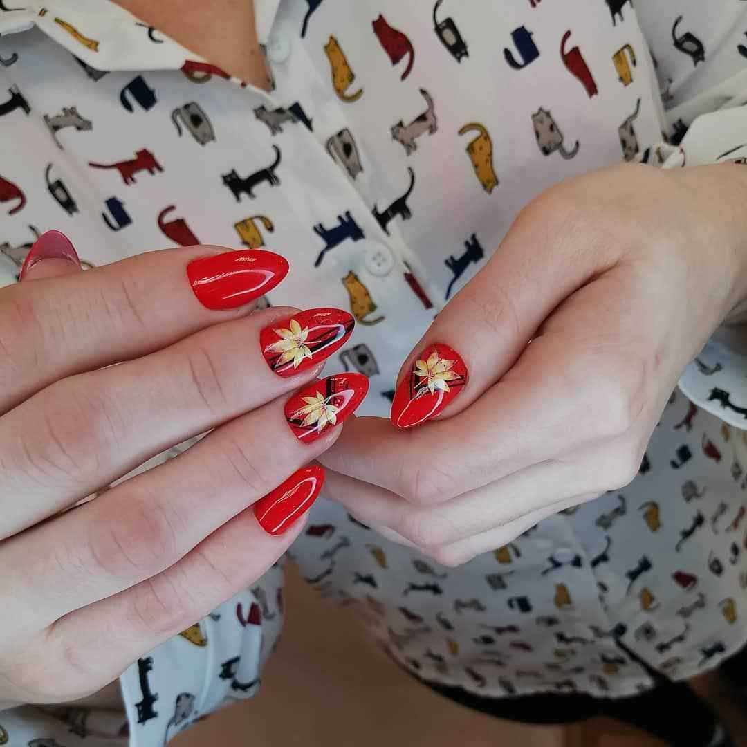 Красный маникюр с цветами