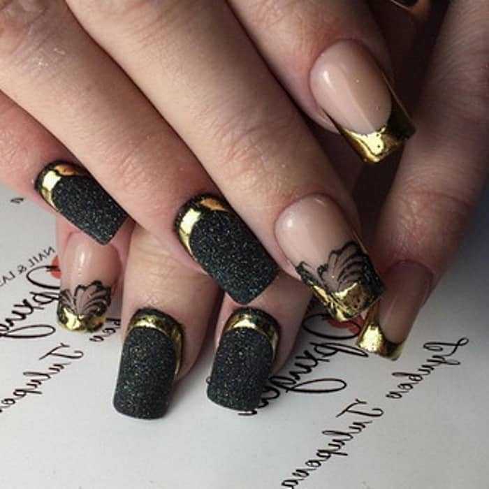 Пожалуй, одним из самых популярных цветовых сочетаний является черно-золотой френч