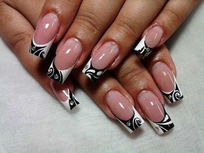 За счет столь явного контраста маникюр получается насыщенным, в меру ярким. Наиболее часто его выбирают для различных праздников.
