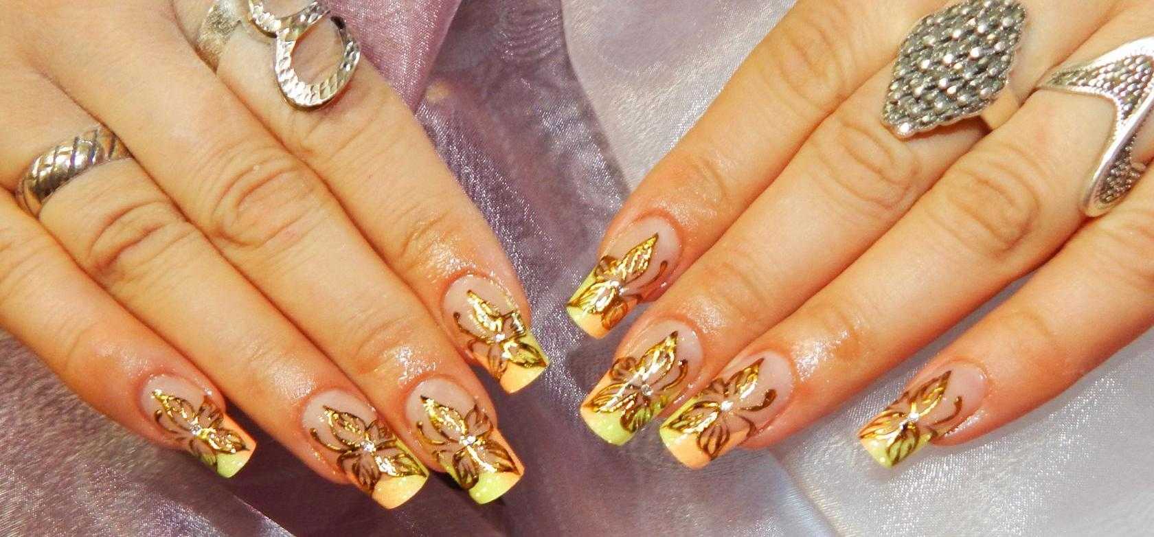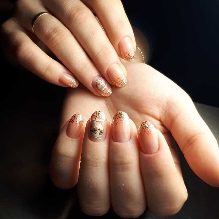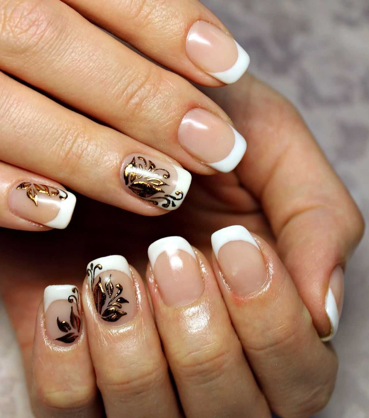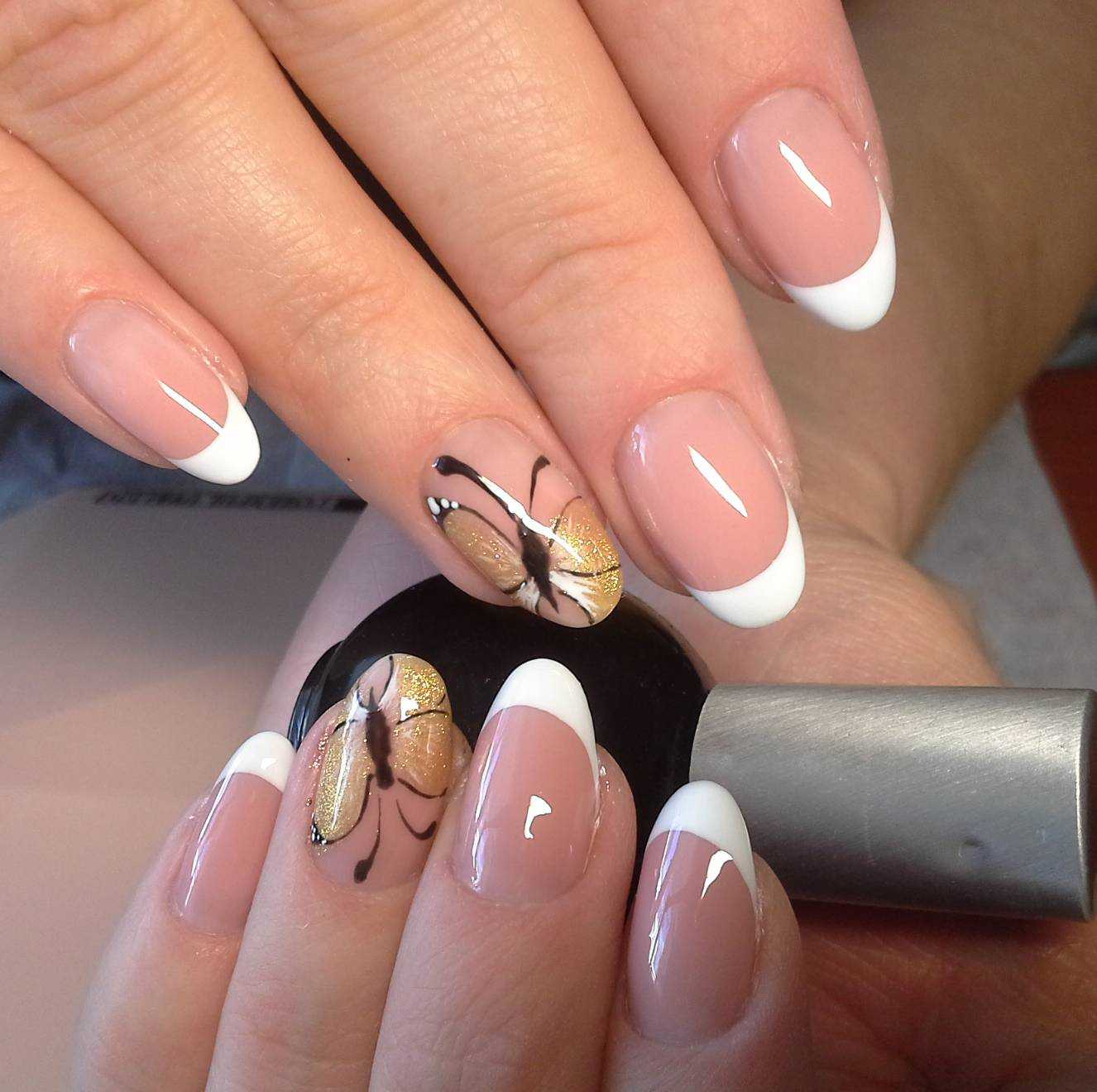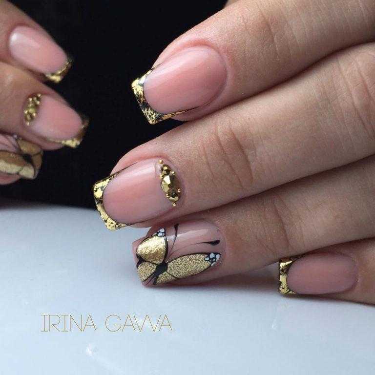 Одним из самых нежных и романтичных считается рисунок в виде бабочек. Они невероятно красиво смотрятся вместе с френчем в золотом цвете. Также все чаще девушки предпочитают дополнять маникюр рисунком в виде животных или же анималистичным принтом. В данном случае это действительно гармоничное сочетание.