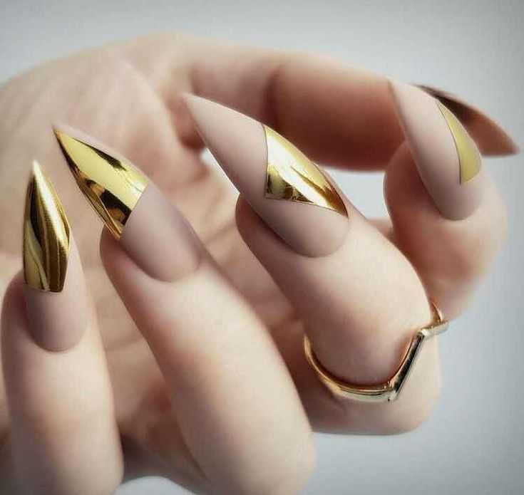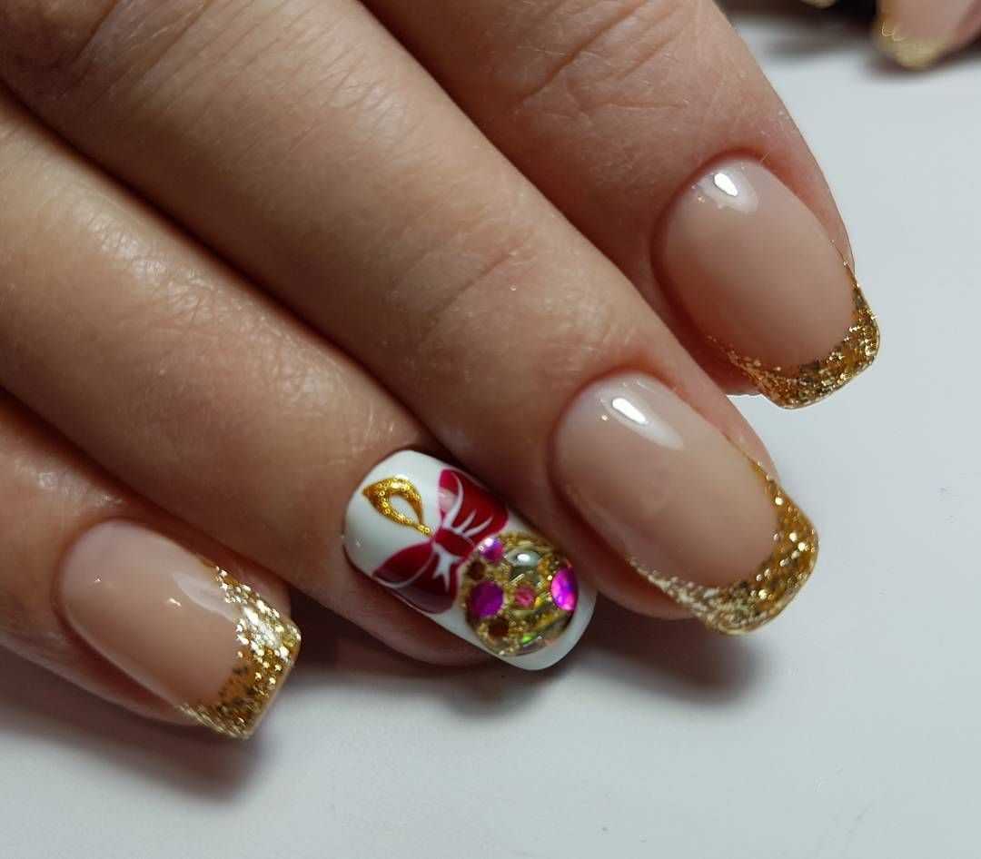 Френч с золотыми и серебряными лунками 2023 фото варианты