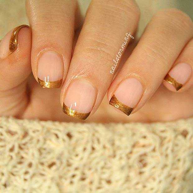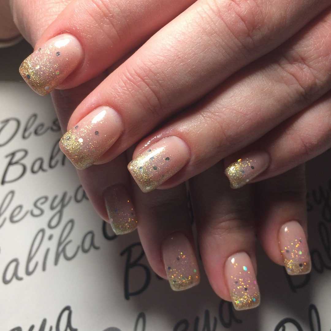 В данной статье мы с вами вспомнили лишь несколько вариантов французского маникюра в золотистом оттенке. Но в мире существует на много больше интересных предложений маникюра в данном стиле, где фигурируют не только блестки и фольга, а и много других элементов дизайна. Но надеемся, что даже наши предложения смогли положительно повлиять на тех модниц, которые считают, что френч — это уже всеми забытый маникюр. Пробуйте и убеждайтесь, что французский маникюр будет всегда на пике моды.