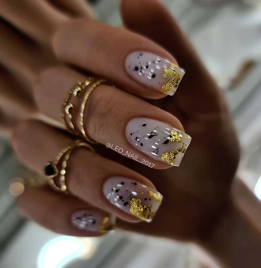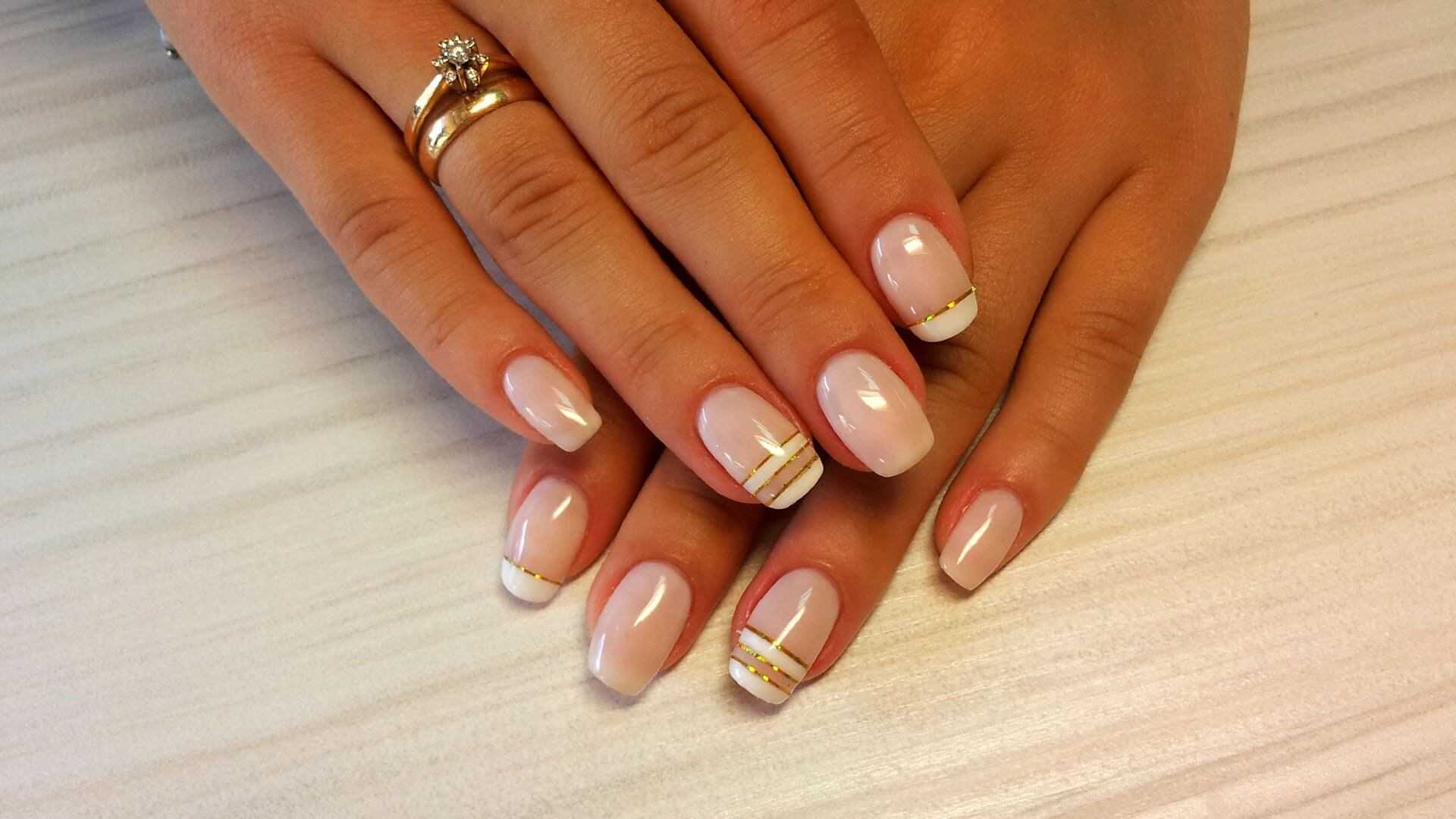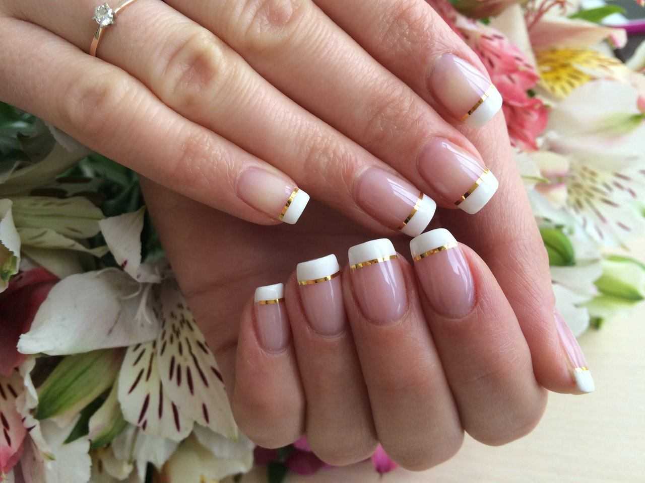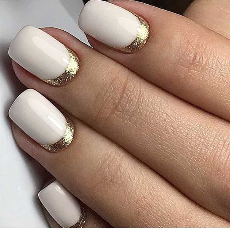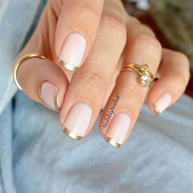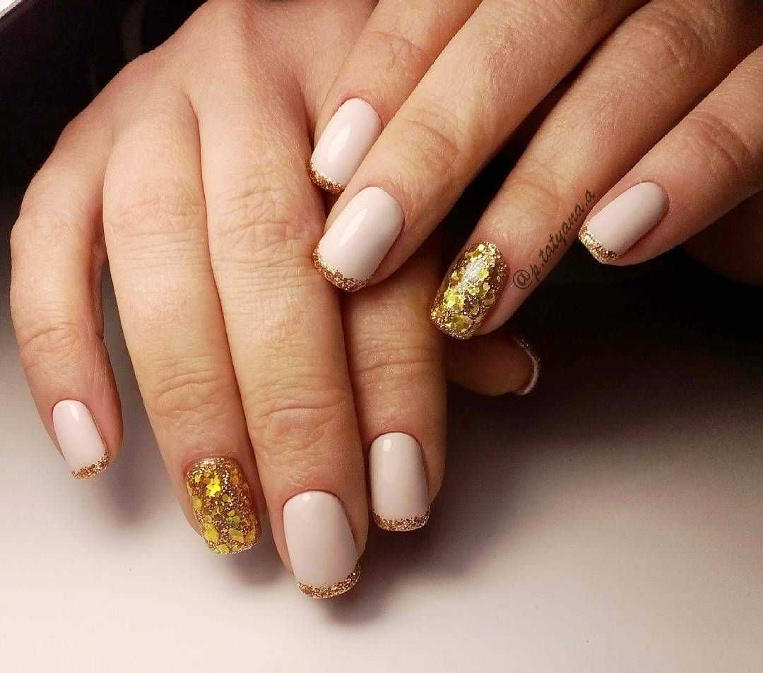 Золотой френч на молочной базе. Стильные идеи молочного маникюра