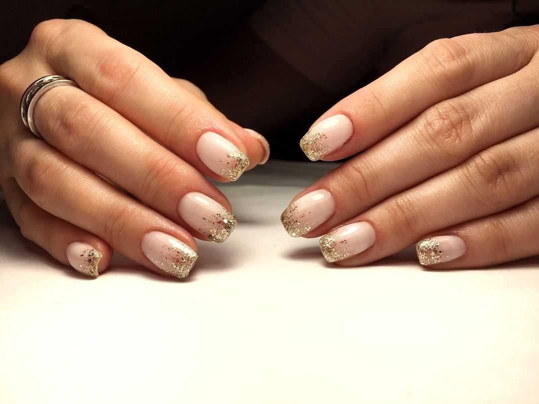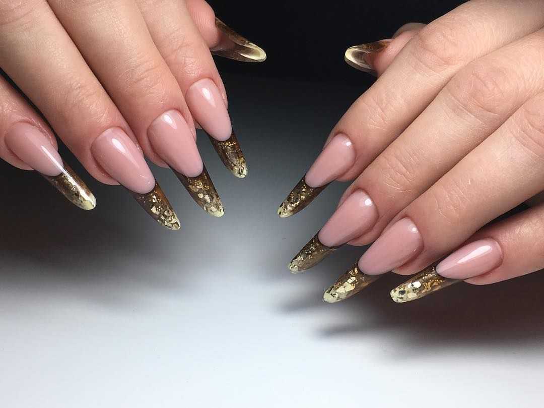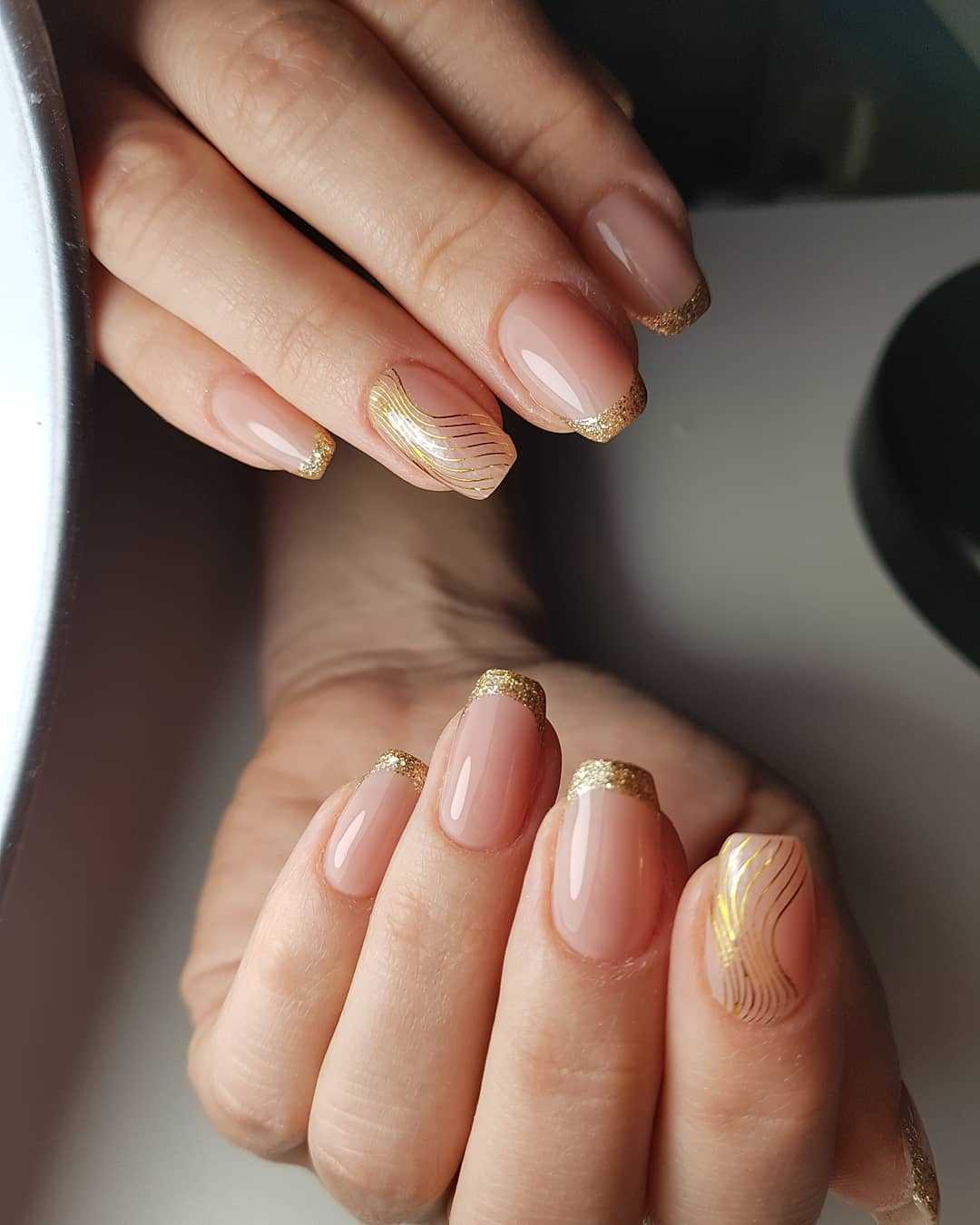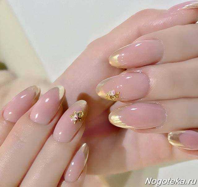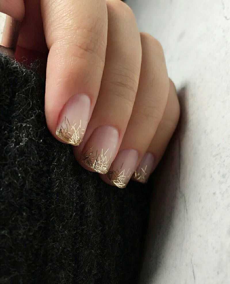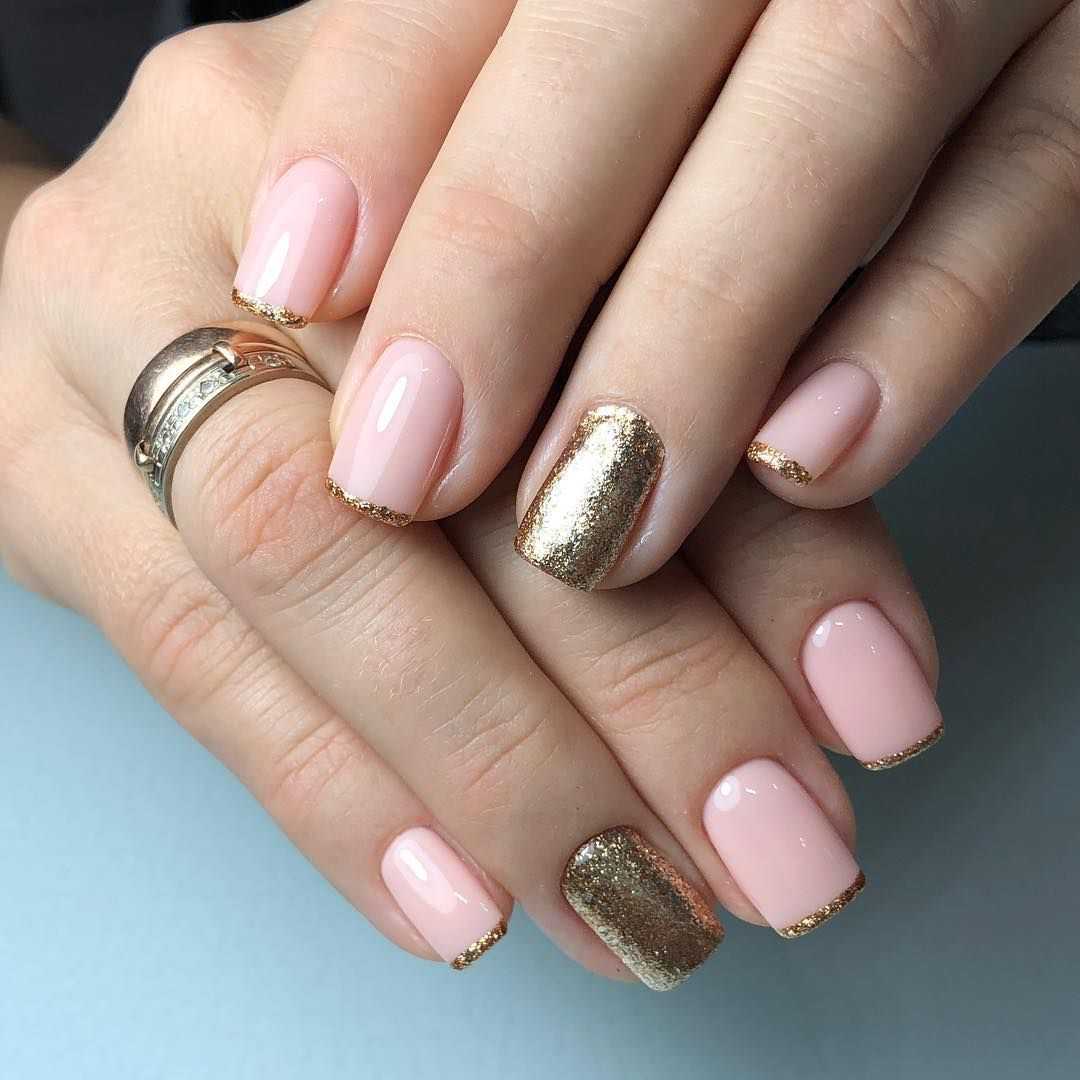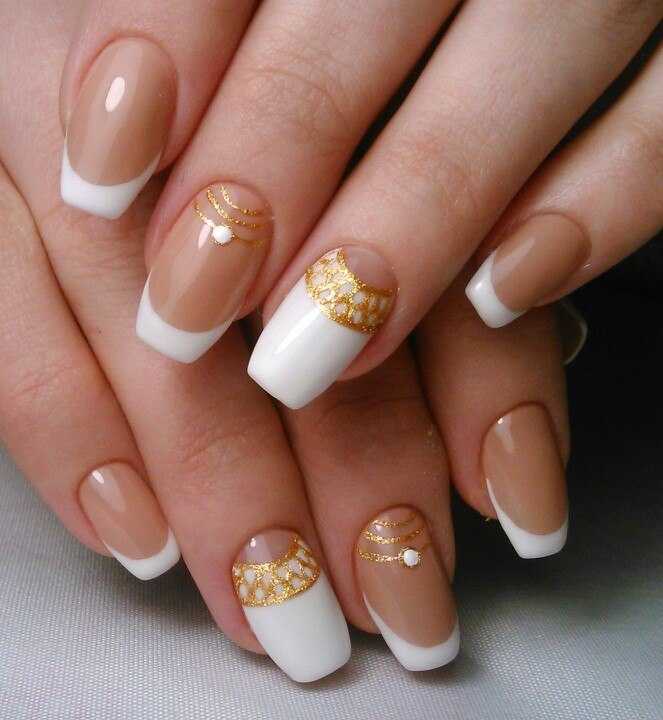 Золотой френч на молочной базе. Стильные идеи молочного маникюра