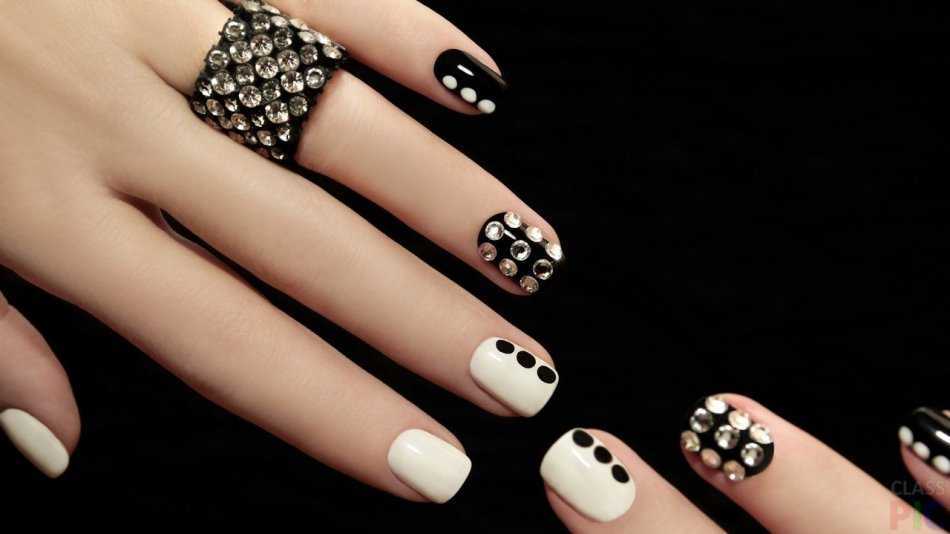 Нежнейшая абстракция в черно-белом маникюре с декором