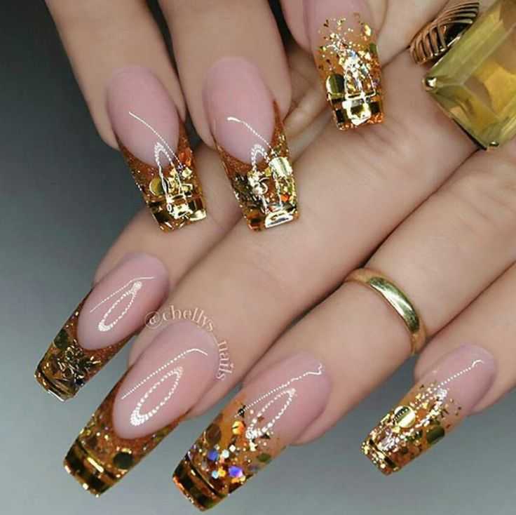 Вариантов дизайна оранжевого маникюра с золотом множество. Достаточно открыть интернет и просмотреть фото. Обязательно найдется несколько интересных вариантов.
