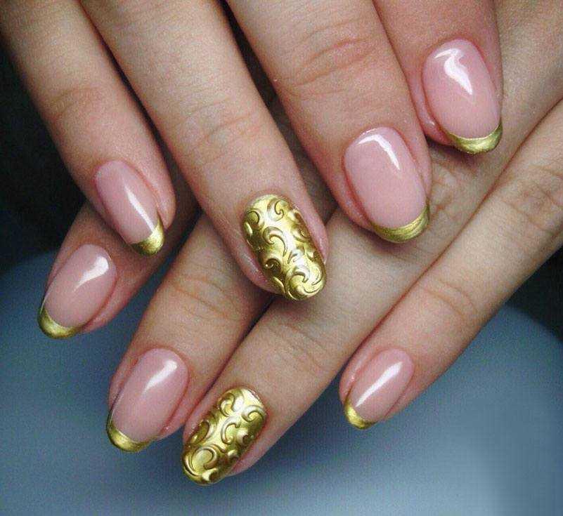 Французский маникюр в золотом цвете – это отличная альтернатива классике. Благодаря различным рисункам и дополнительному декору любой маникюр будет выглядеть стильно и современно. Вдохновляйтесь идеями в подборке фото и смело воплощайте их в жизнь.