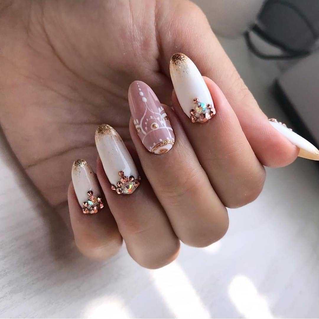 Розовое золото — также удачный элемент для молочного дизайна с блёстками.