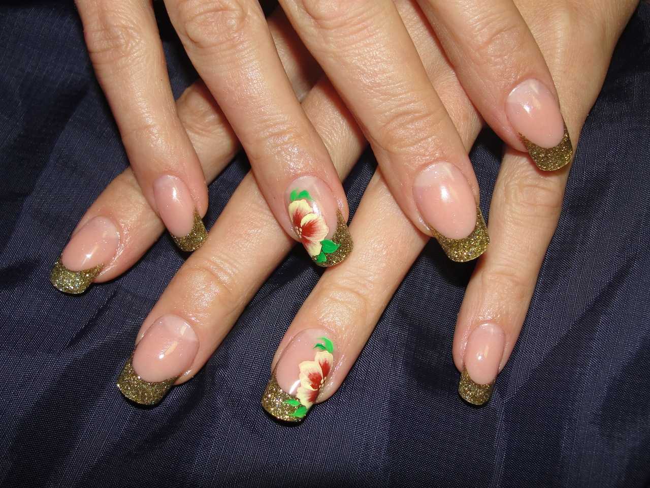 Как известно, классический френч часто сочетают с цветочным принтом. В данном случае это также актуально. Нежные бутоны или же крупные цветы лишь дополнят дизайн и сделают его еще более привлекательным