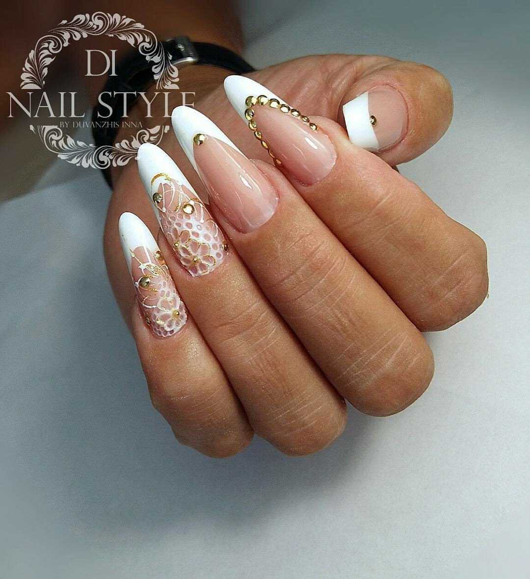 Френч маникюр с дизайном на разной форме ногтей в 2022 году