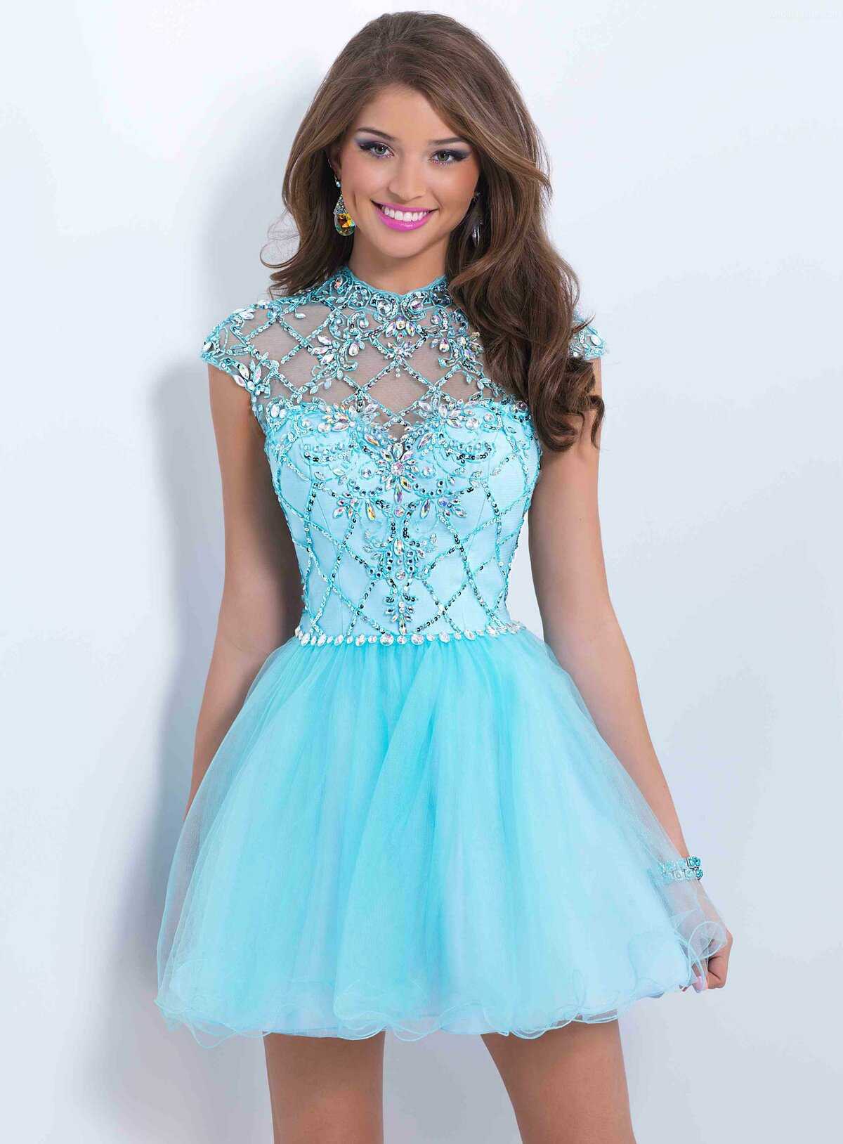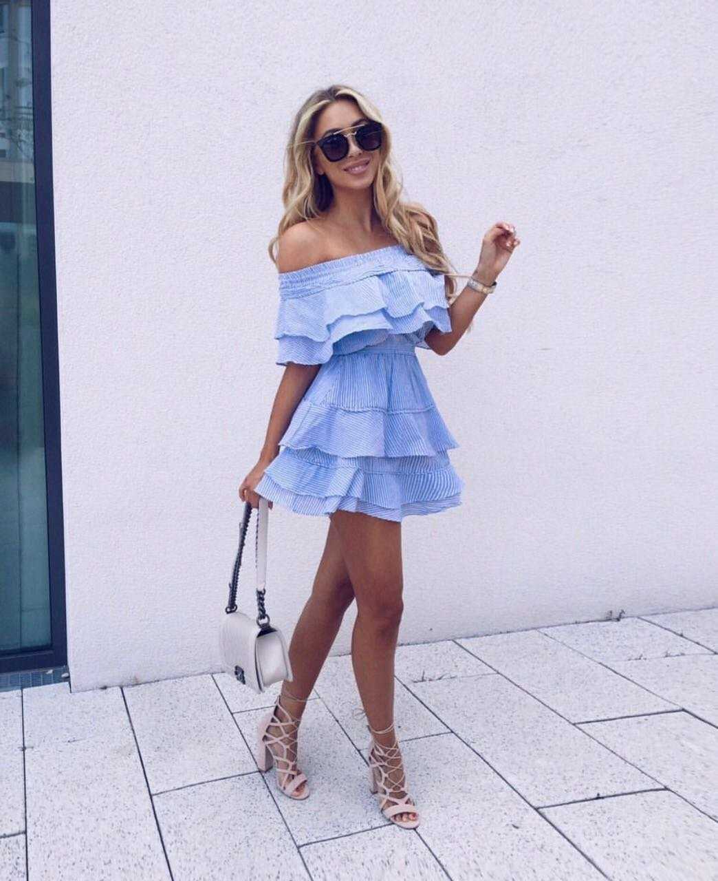 Интересные модели голубого короткого платья