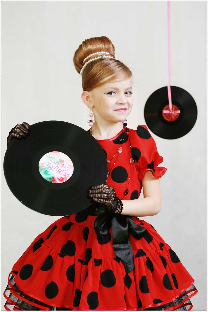 Конечно, в создании соответствующего образа участвует не только одежда и обувь, но и прическа, даже макияж. Чтобы отразить этот стиль, необходимо изучить примеры того, как делали прически девушки прошлого века. Чтобы создать из детских тонких волос определенный объем, можно сделать флис и закрепить лаком. Если косы длинные, достаточно завить локоны и завязать яркой лентой в тон поясу.