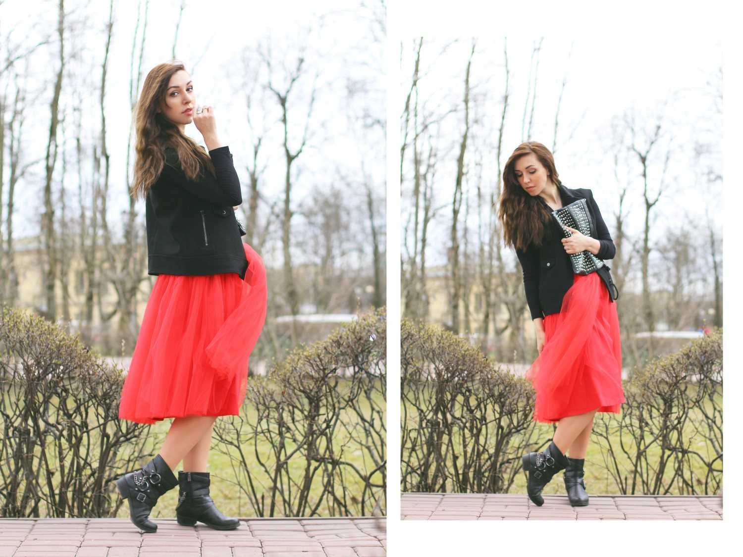 Отличным акцентом образа смелых и ярких девушек станет красная пачка