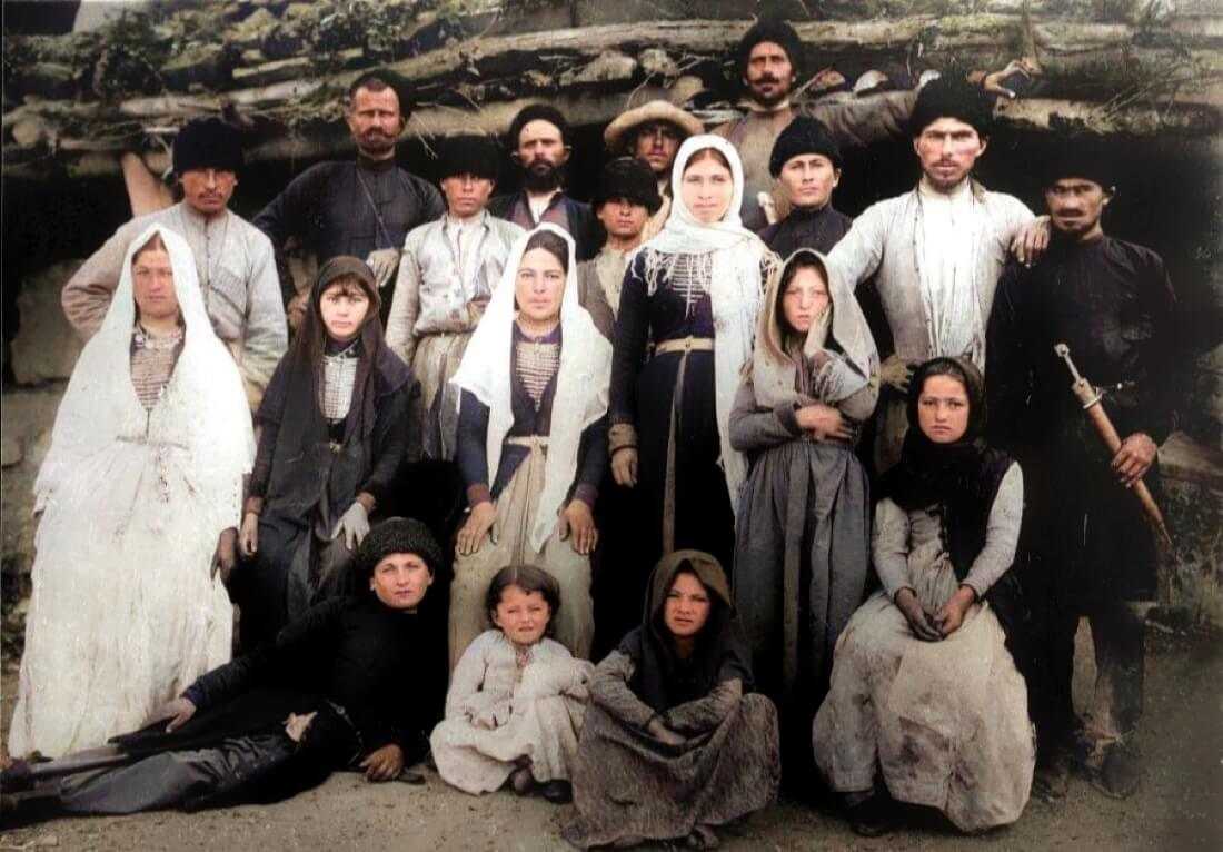 Дмитрий Иванович Менделеев вместе с горцами-ингушамиу Фуртоугского водопада во время научной экспедиции, 30 июля 1880 года