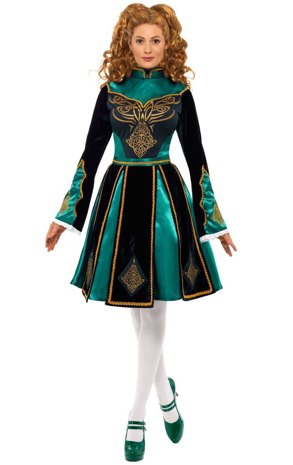О женском костюме кельтских времен к XIX веку было известно еще меньше, чем о мужском костюме. Сегодня женской народной одеждой в Ирландии считается платье с подчеркнутой линий талии и расширяющееся книзу. Исполнительницы ирландских народных танцев носят такие платья однотонные зеленого цвета либо с юбкой в полоску. Еще один элемент женского народного костюма Ирландии – шали, украшенные яркой каймой.