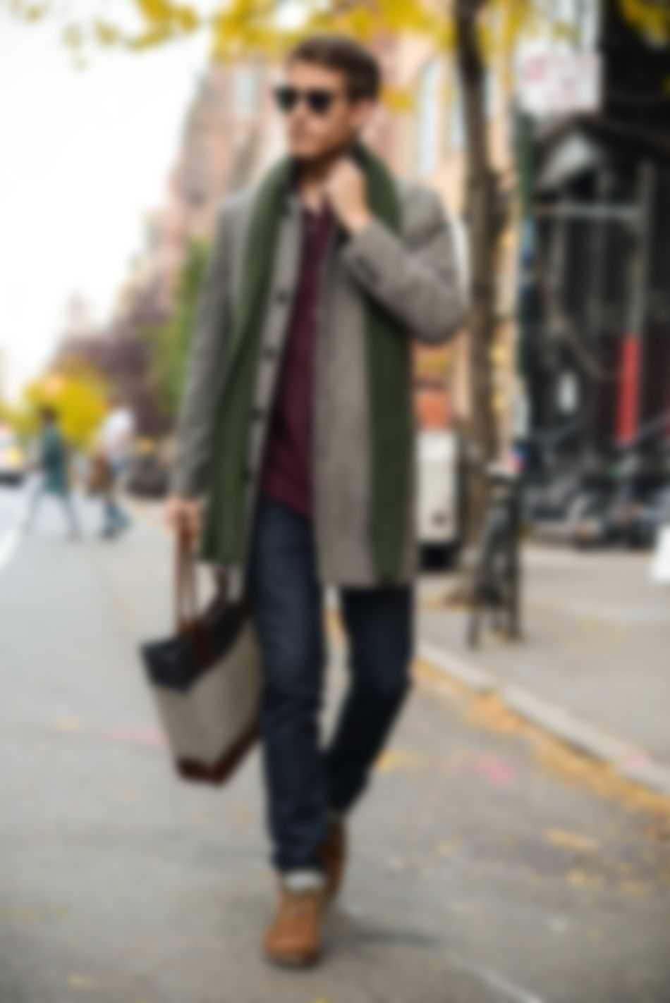 Мужчины также носят пальто, предпочитая в этом году укороченные версии. Их дополняют классическими брюками или джинсами, а также шарфами.