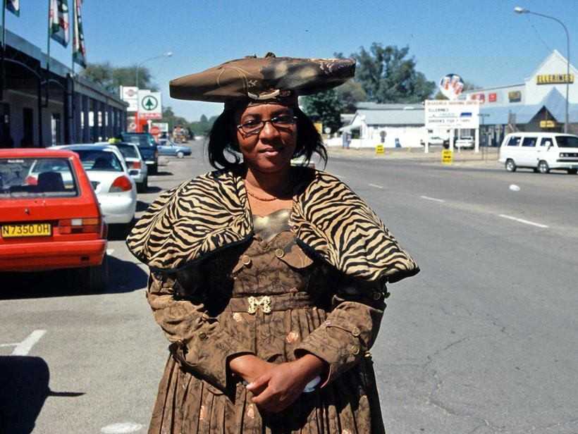 Внешний облик гереро сильно отличается от соседних народов, таких как, например, химба, с которыми они состоят в тесном генетическом и языковом родстве. Сегодня национальный костюм женщин гереро состоит из длинного яркого платья, праздничная разновидность которого имеет кружевные украшения и более пышные юбки. Голову модниц гереро обязательно украшает необычный предмет гардероба — отжикалва, концы которого символизируют коровьи рога. Дело в том, что гереро — скотоводы и к крупному рогатому скоту относятся с большим почтением. У этого народа даже существует необычная традиция: если женщине хотят сделать комплимент, то ее сравнивают с коровой. Поэтому и женский головной убор, призванный подчеркнуть красоту и очарование его хозяйки, имеет форму коровьих рогов.