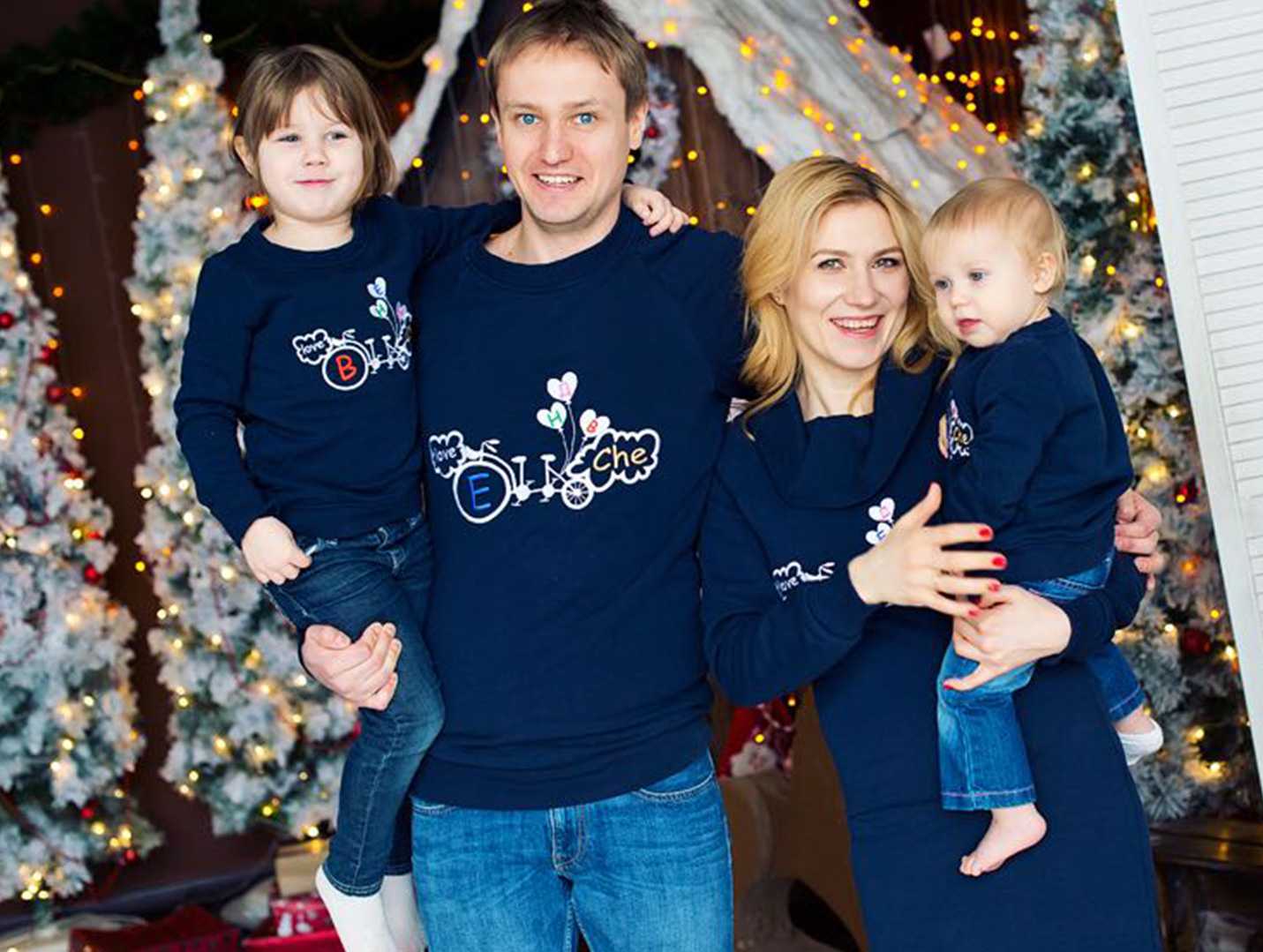 Образ с детьми — джинсы+новогодний свитер