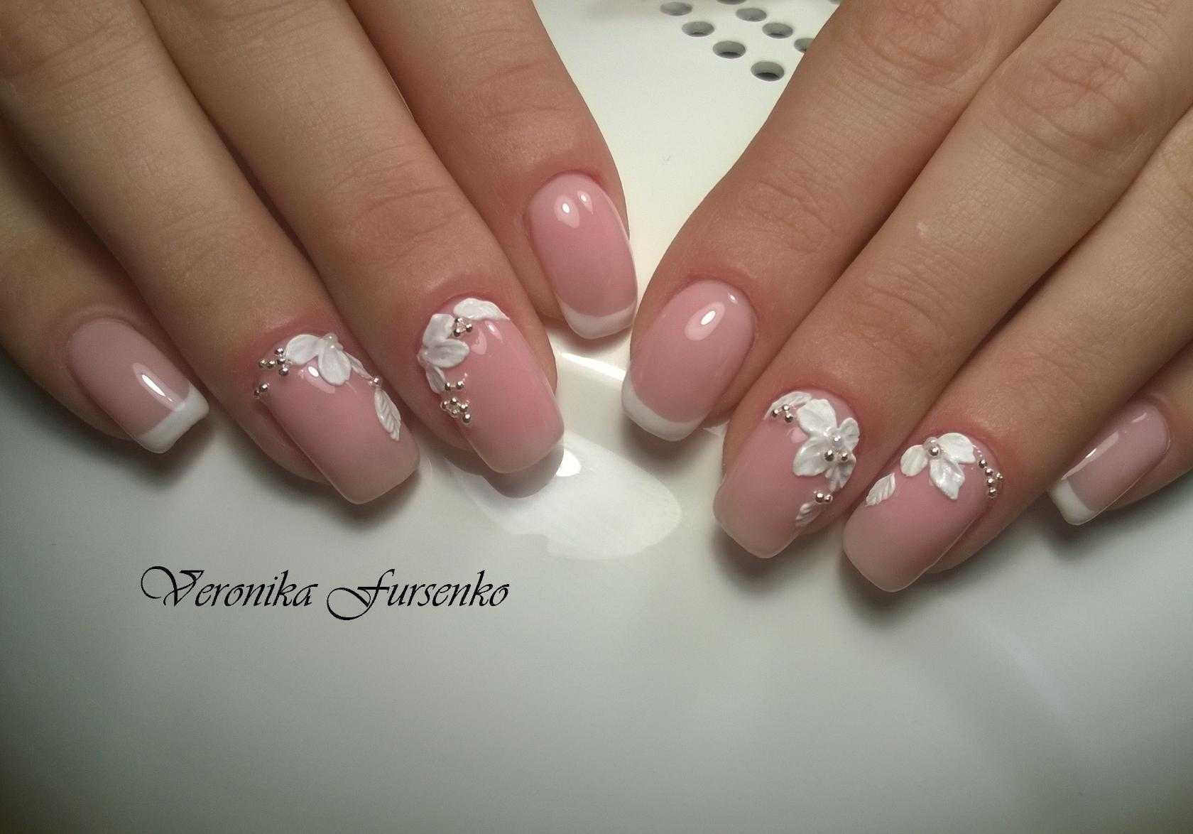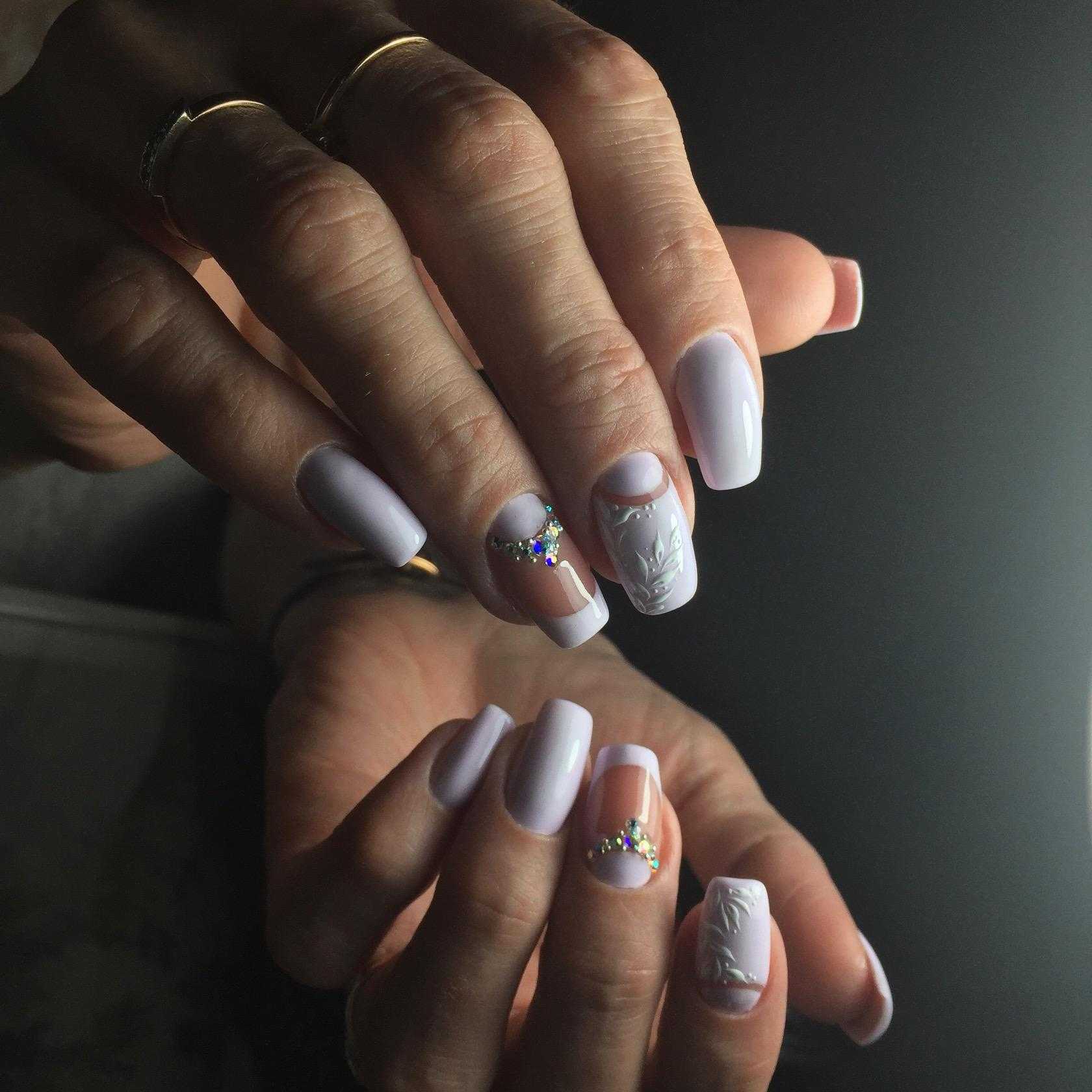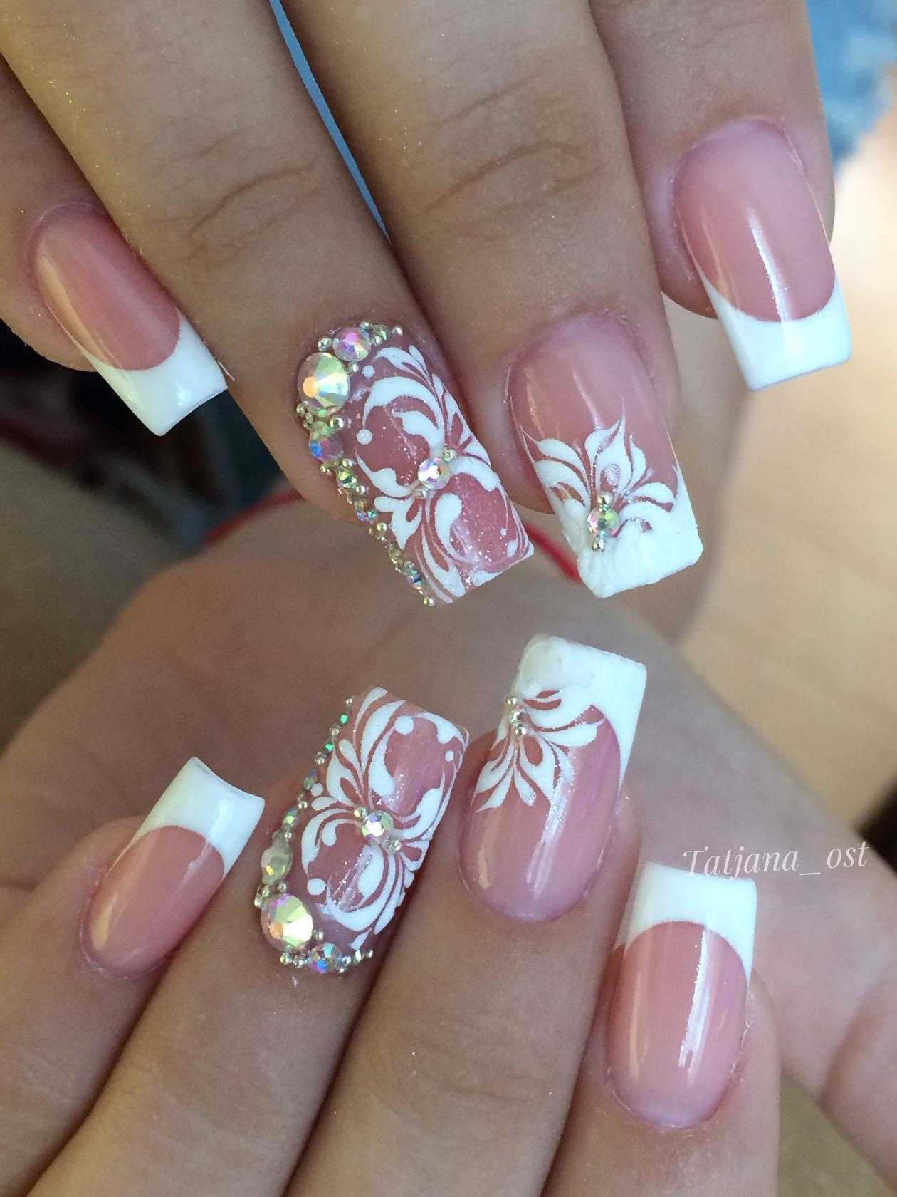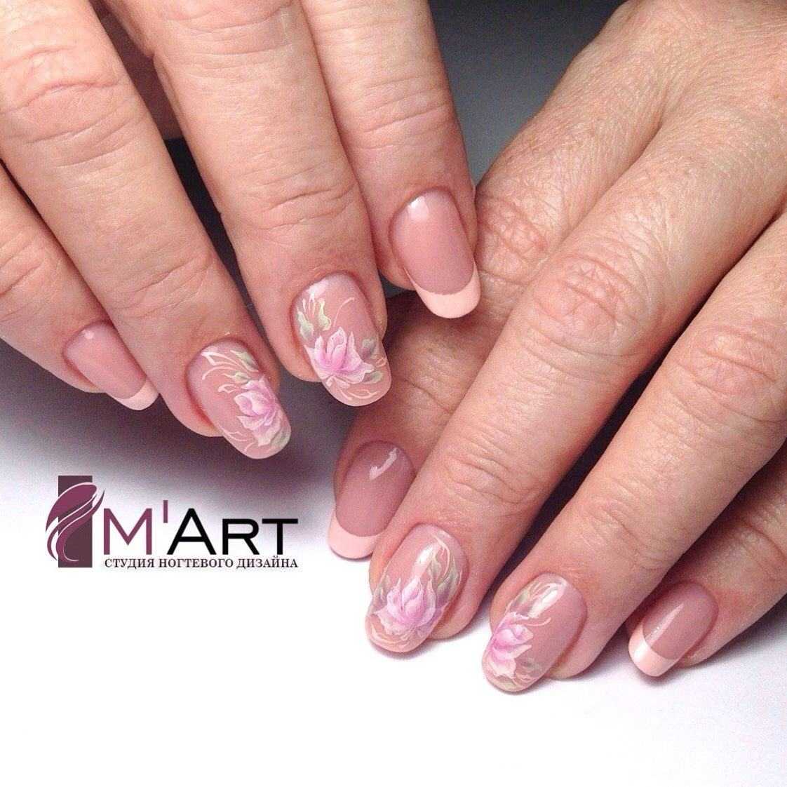 Обычно он дополняется кружевными узорами, флористическими мотивами, художественной росписью, стразами. Такой вариант всегда популярен, так как отличается скромностью и изяществом. Такой маникюр идеально подходит для длинных и средних ногтей. Классические оттенки – полупрозрачный розовый, бежевый, молочный, нюдовый.