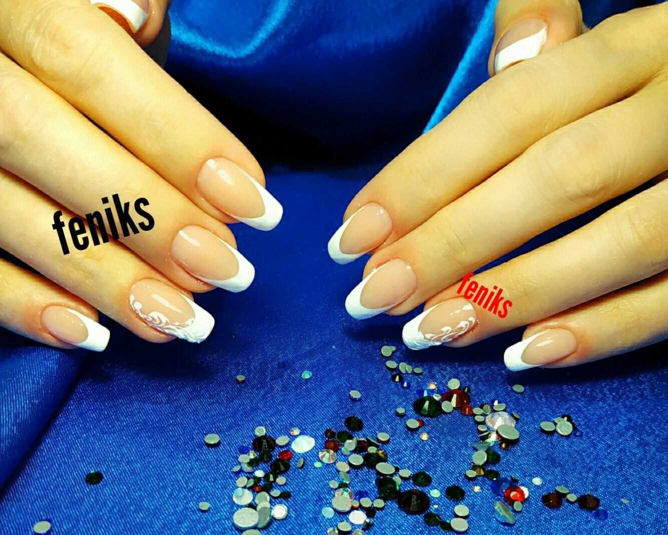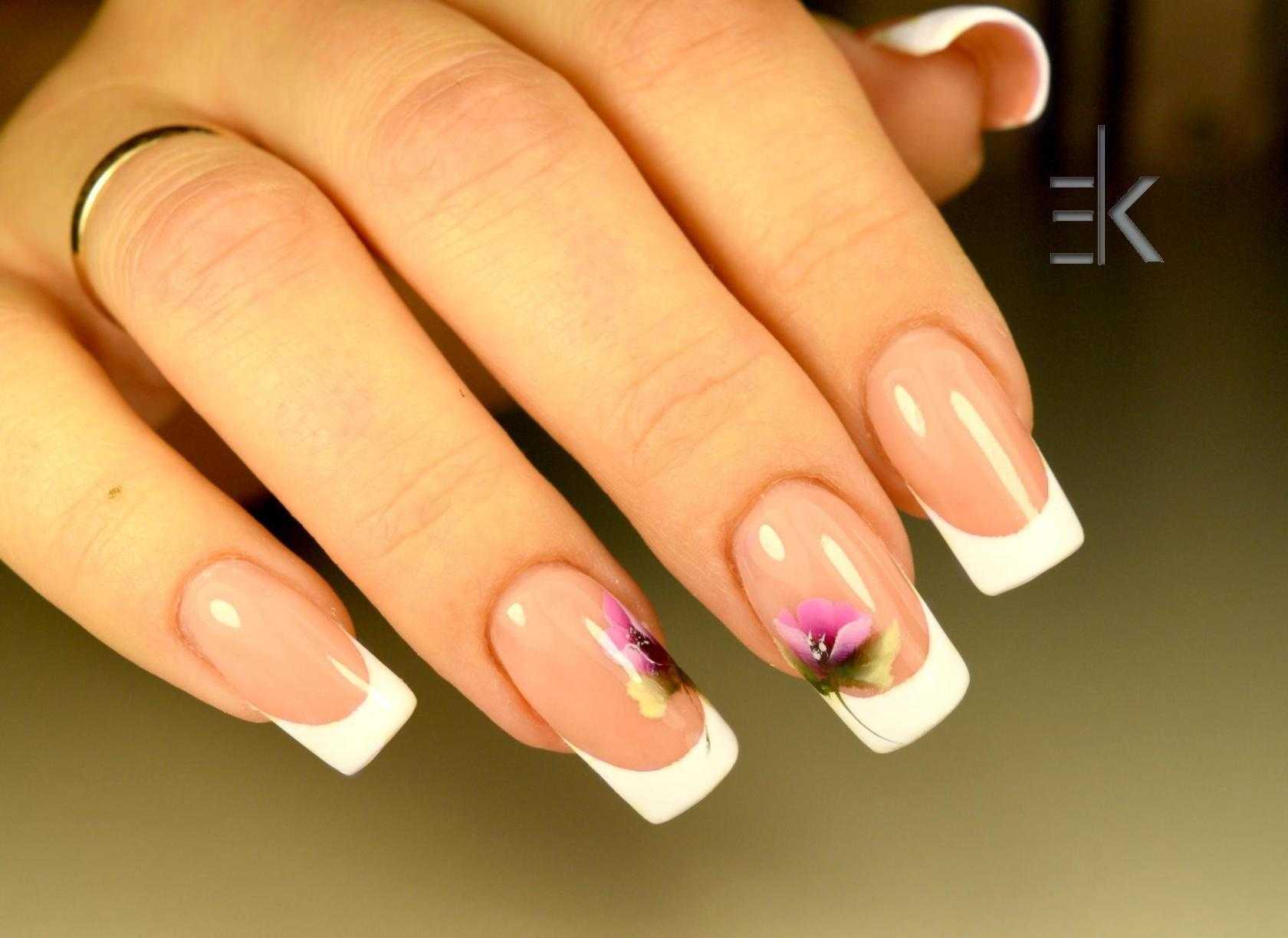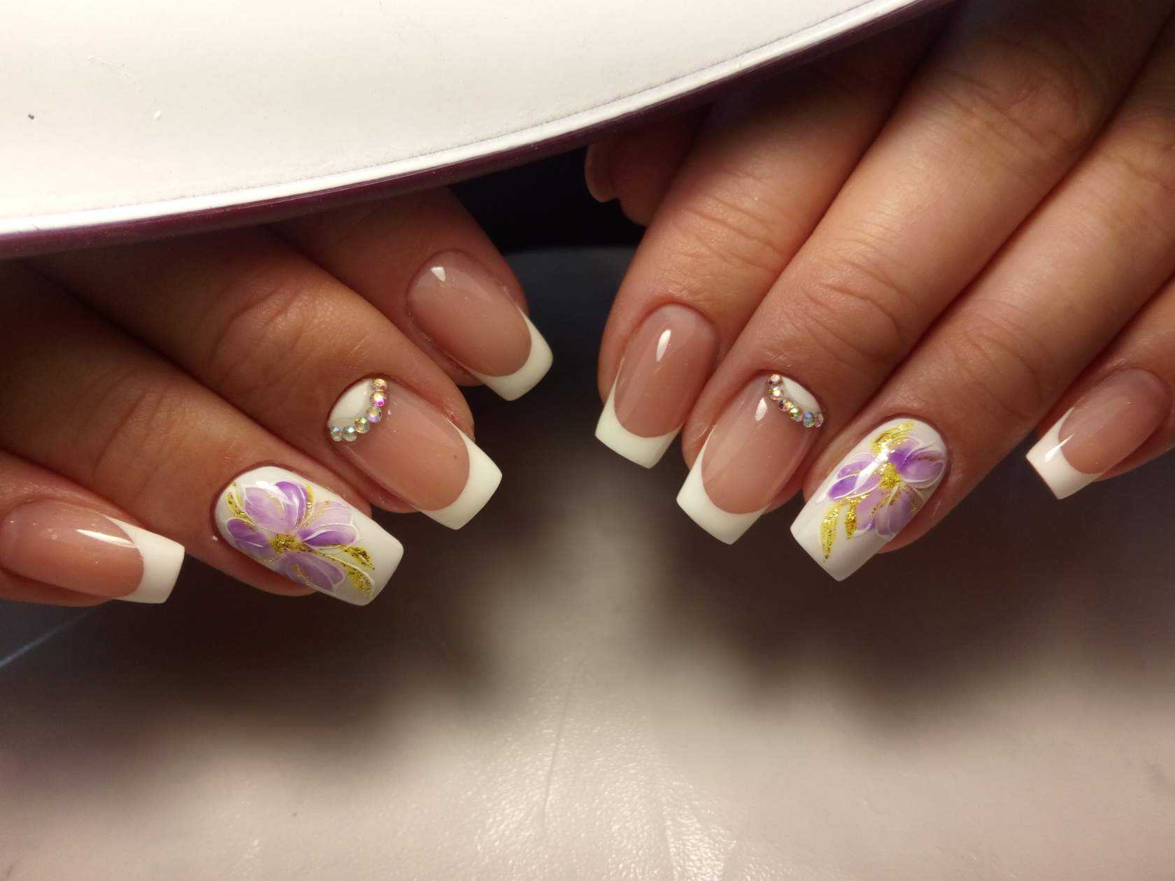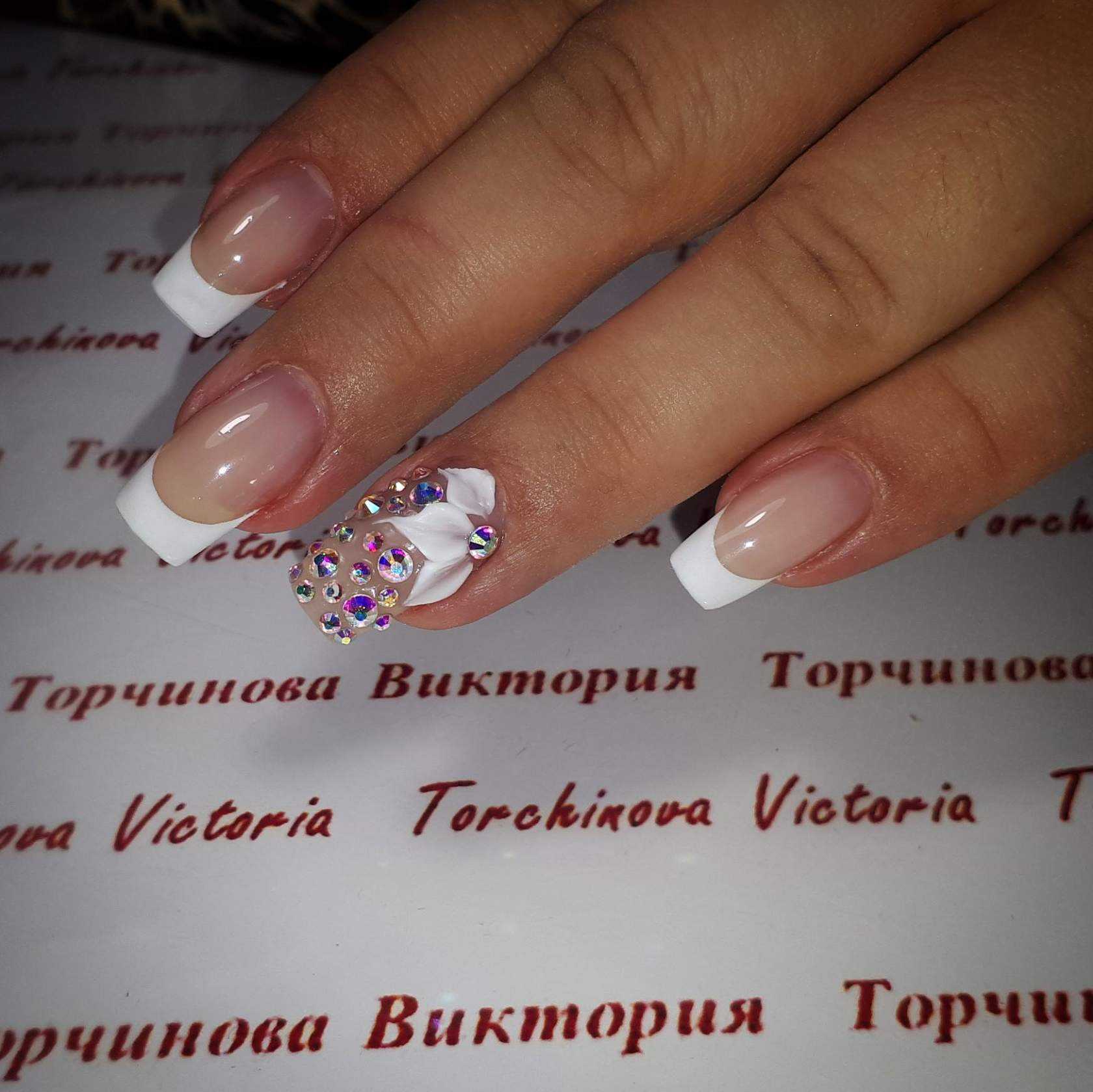 Обычно он дополняется кружевными узорами, флористическими мотивами, художественной росписью, стразами. Такой вариант всегда популярен, так как отличается скромностью и изяществом. Такой маникюр идеально подходит для длинных и средних ногтей. Классические оттенки – полупрозрачный розовый, бежевый, молочный, нюдовый.