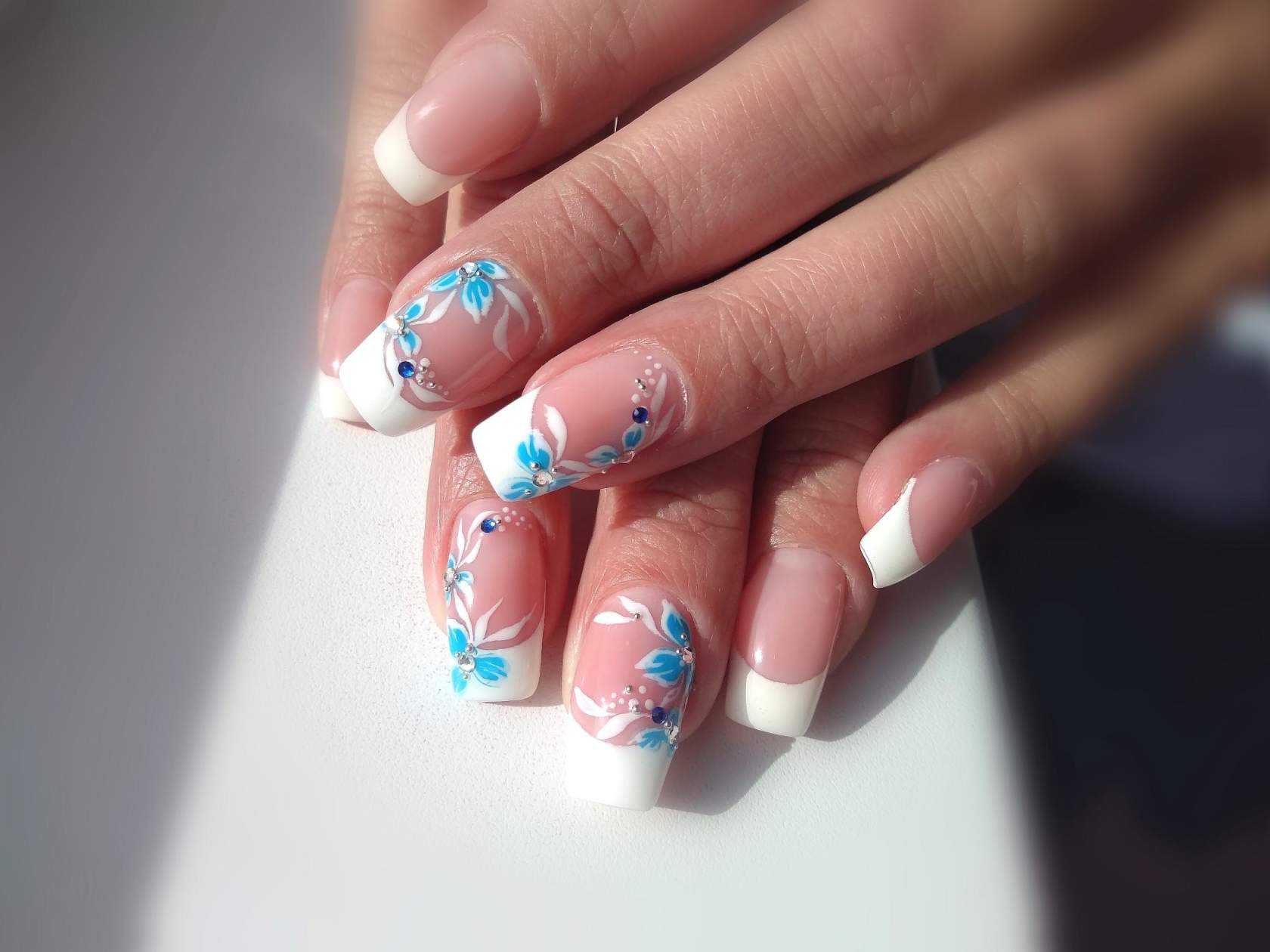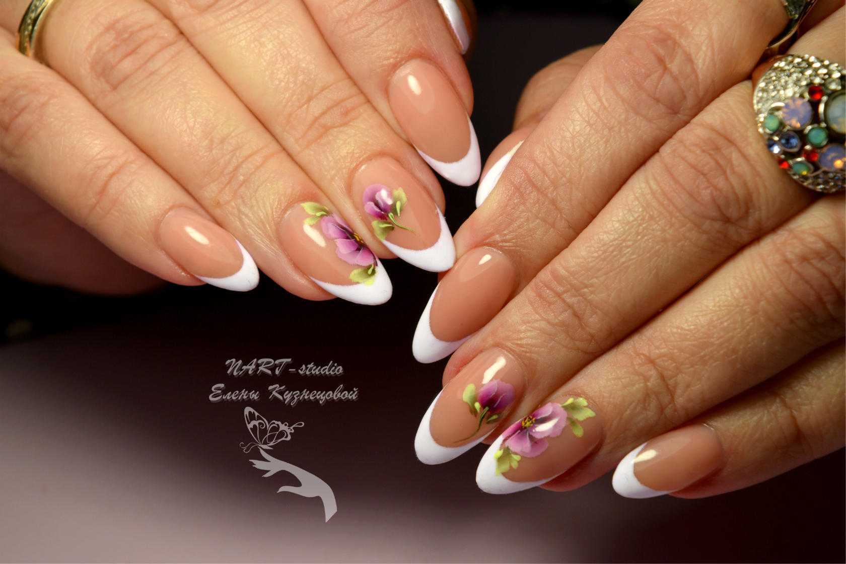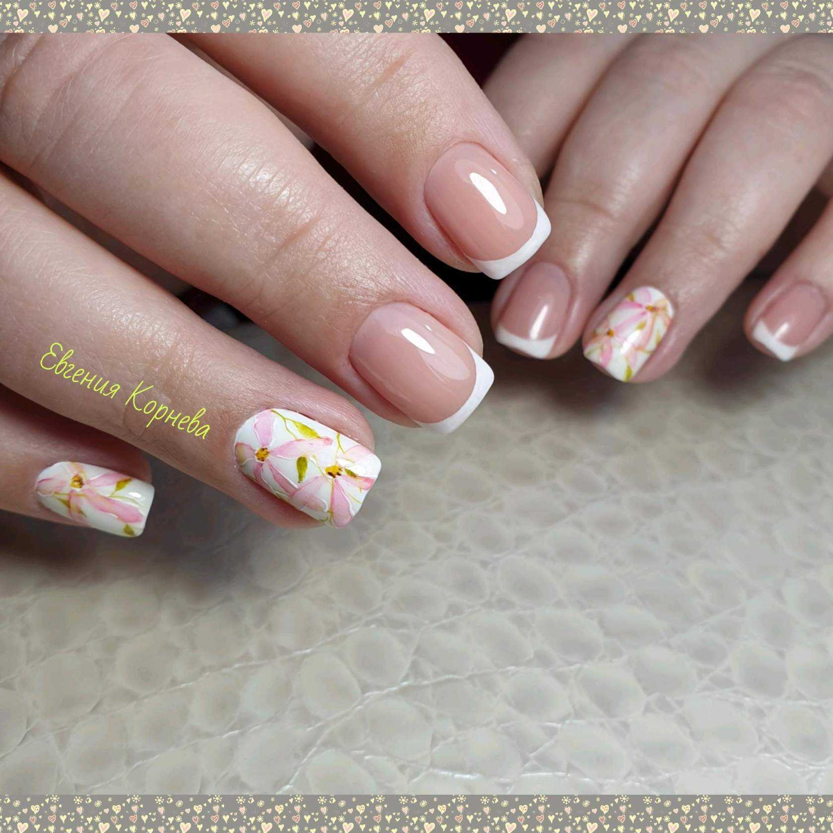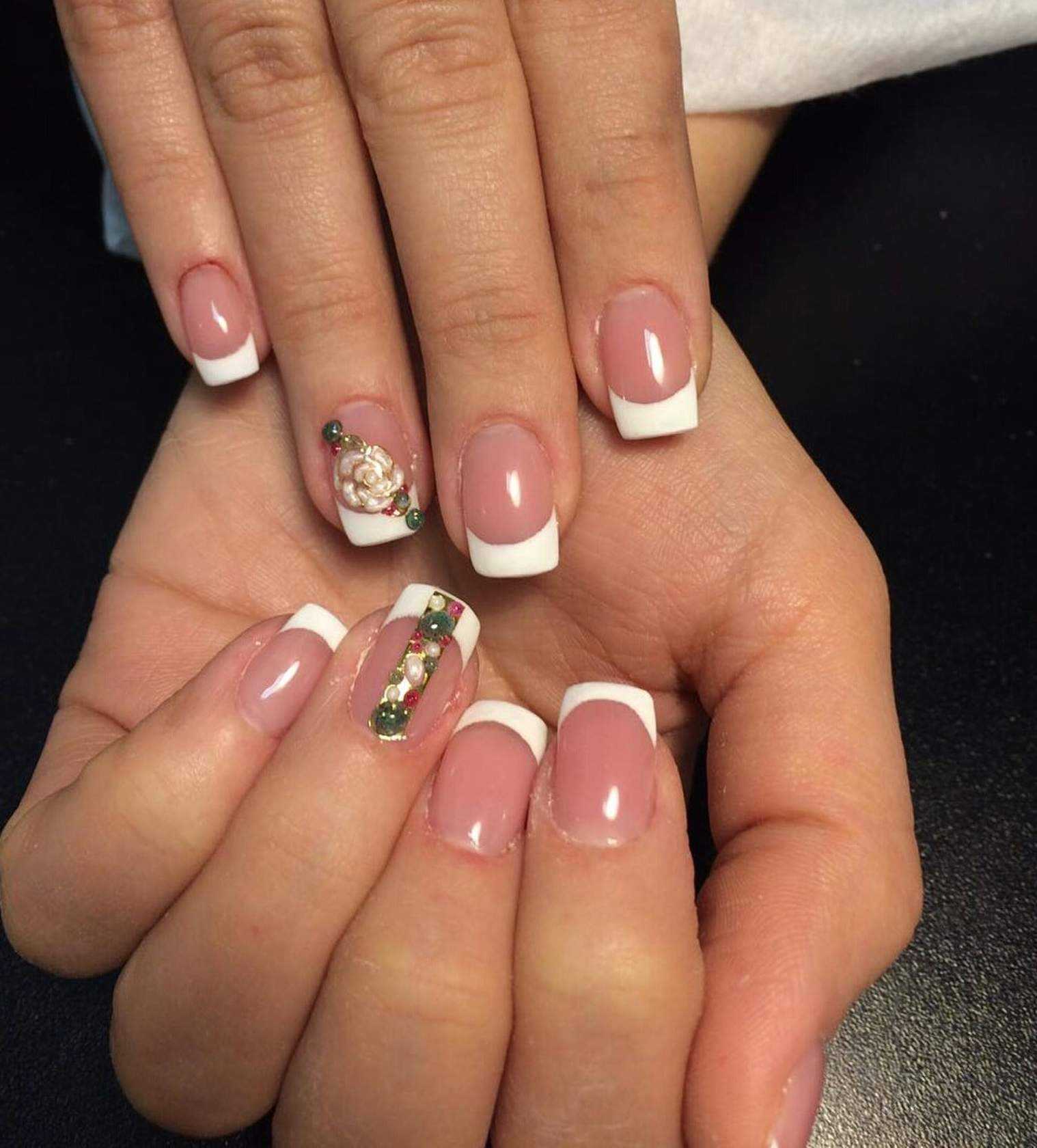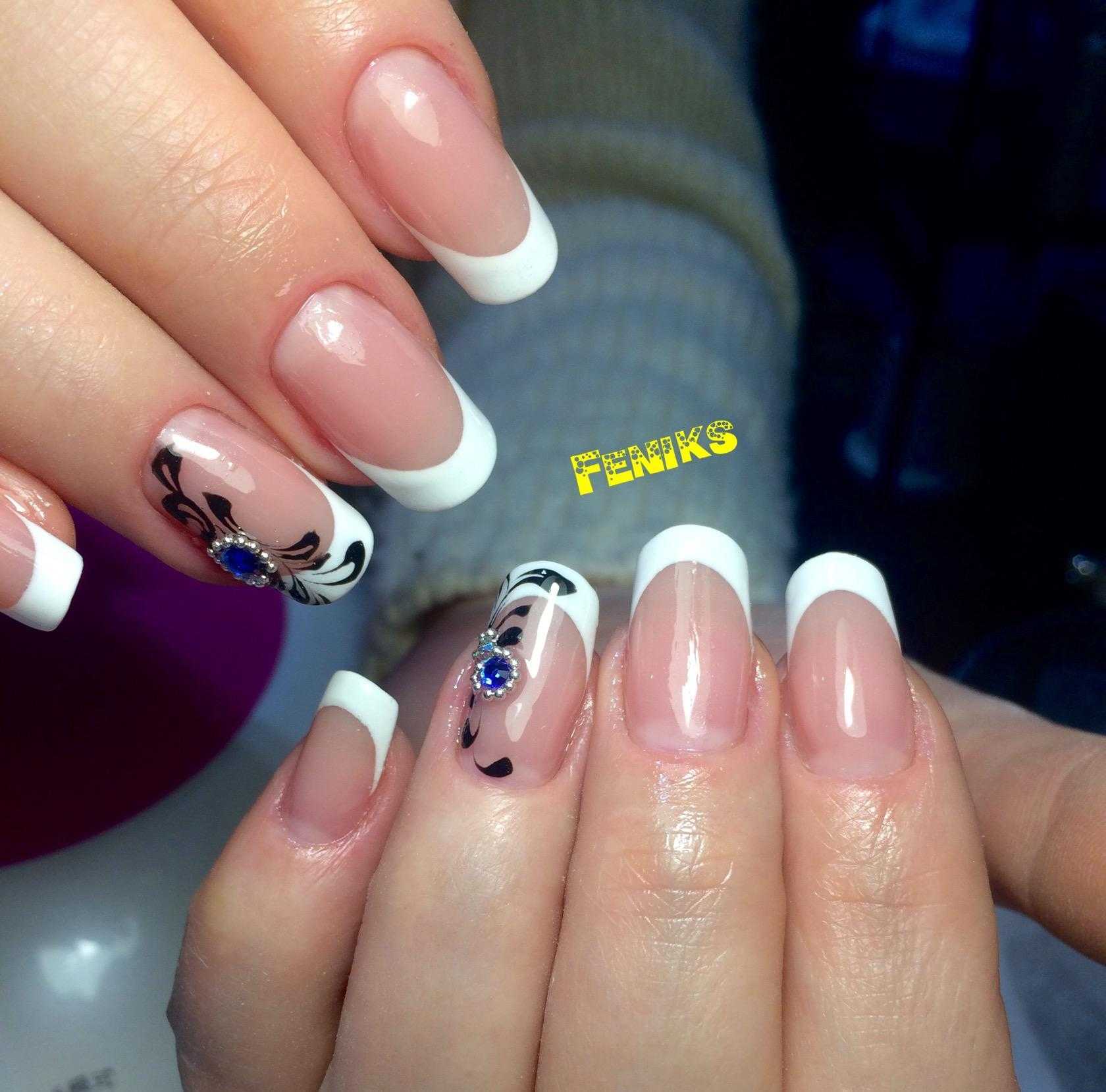 Обычно он дополняется кружевными узорами, флористическими мотивами, художественной росписью, стразами. Такой вариант всегда популярен, так как отличается скромностью и изяществом. Такой маникюр идеально подходит для длинных и средних ногтей. Классические оттенки – полупрозрачный розовый, бежевый, молочный, нюдовый.