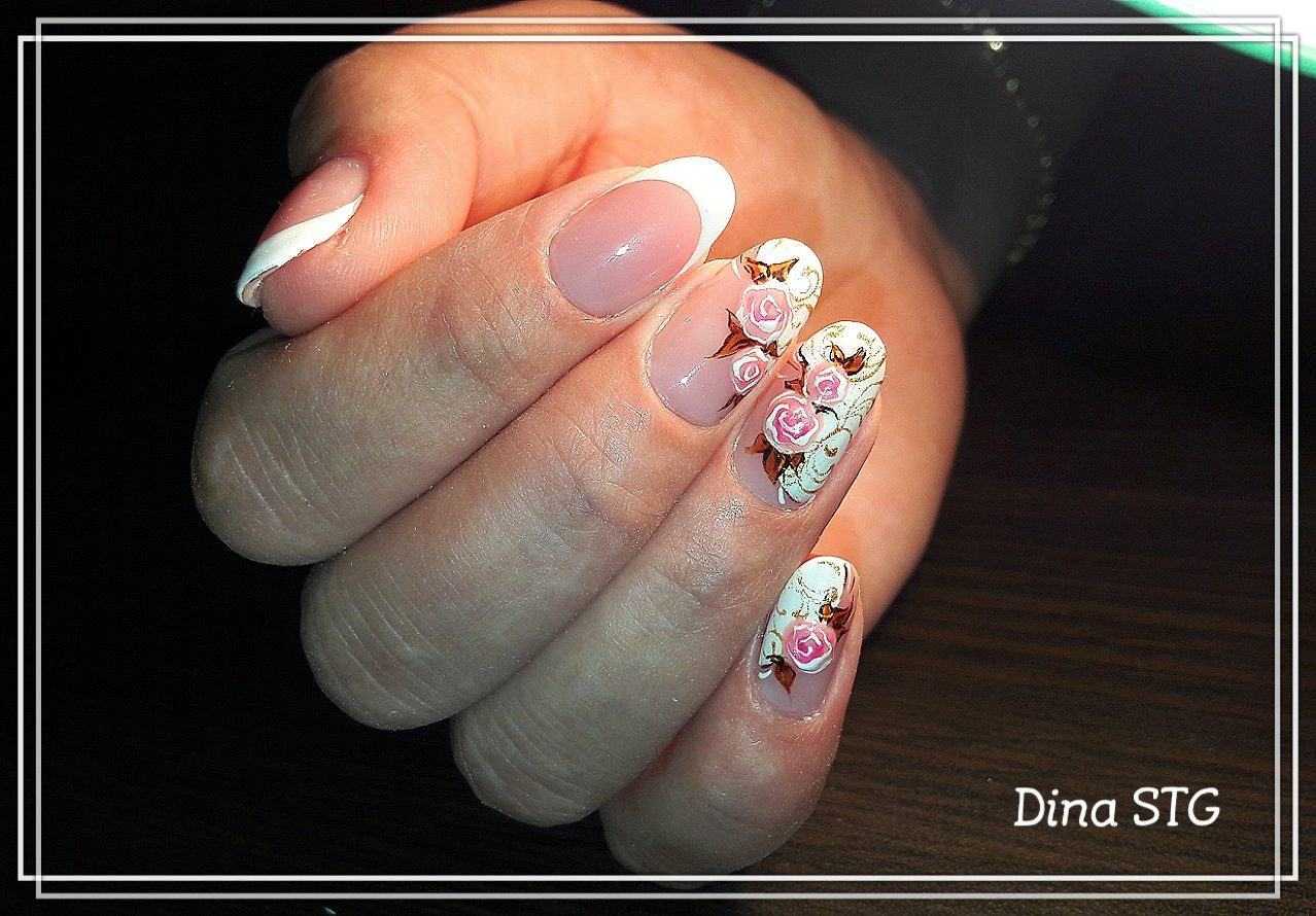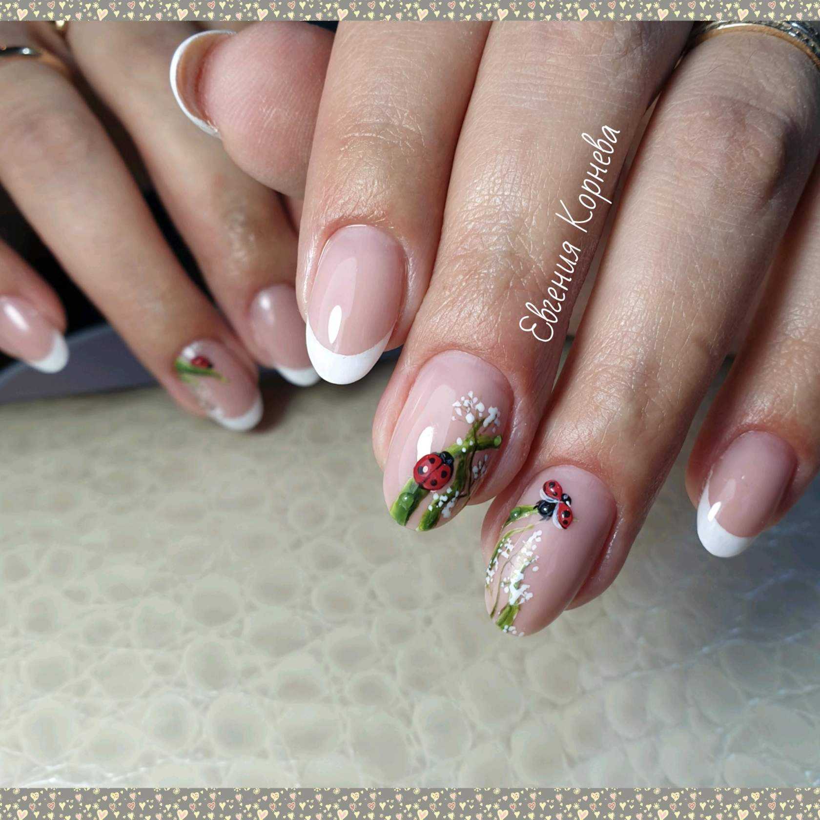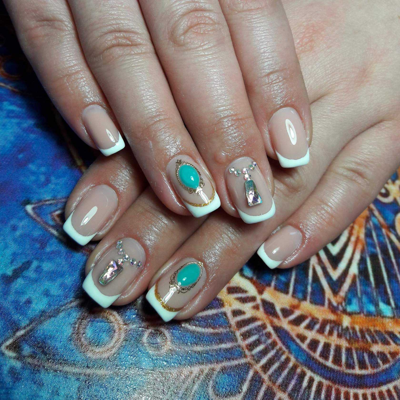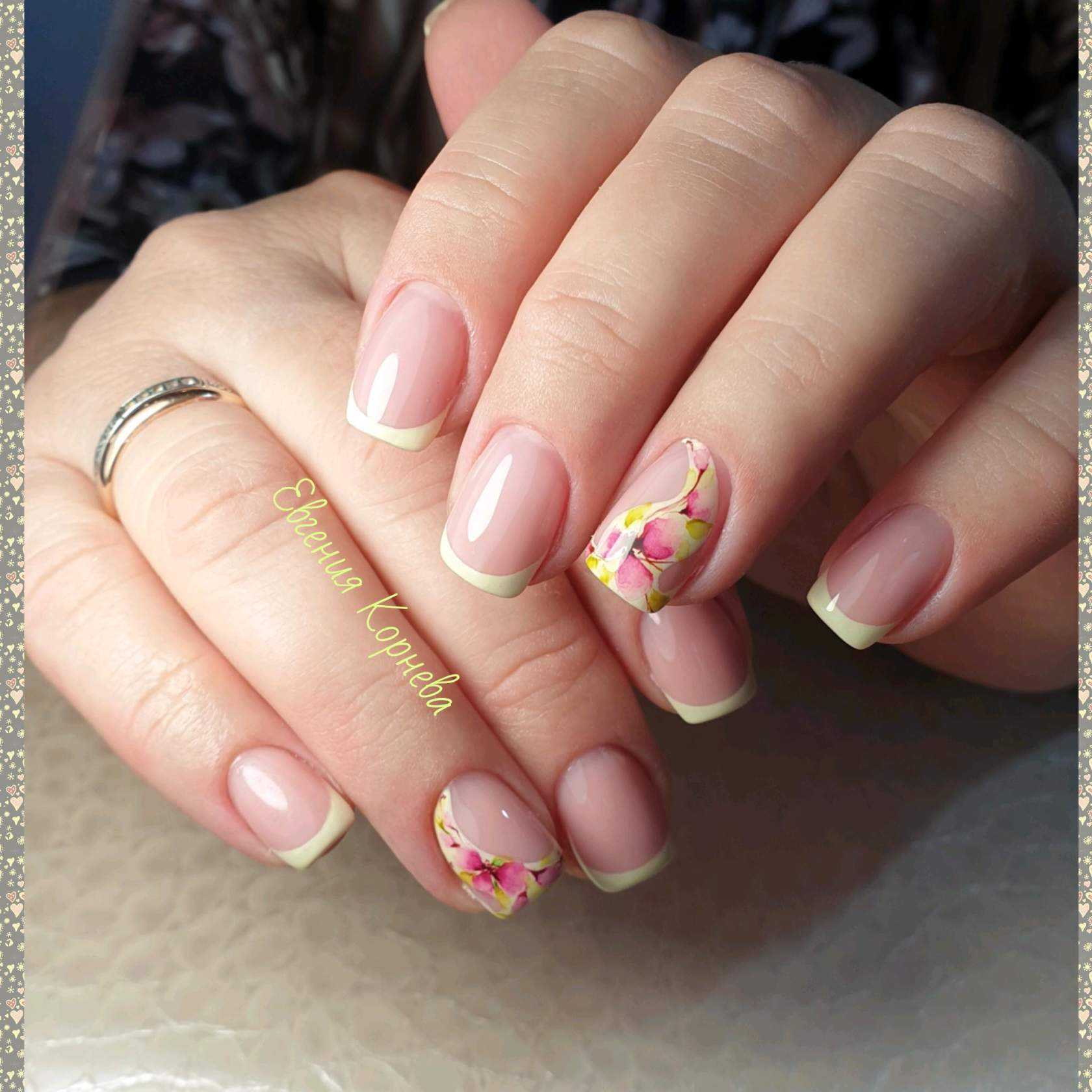 Обычно он дополняется кружевными узорами, флористическими мотивами, художественной росписью, стразами. Такой вариант всегда популярен, так как отличается скромностью и изяществом. Такой маникюр идеально подходит для длинных и средних ногтей. Классические оттенки – полупрозрачный розовый, бежевый, молочный, нюдовый.