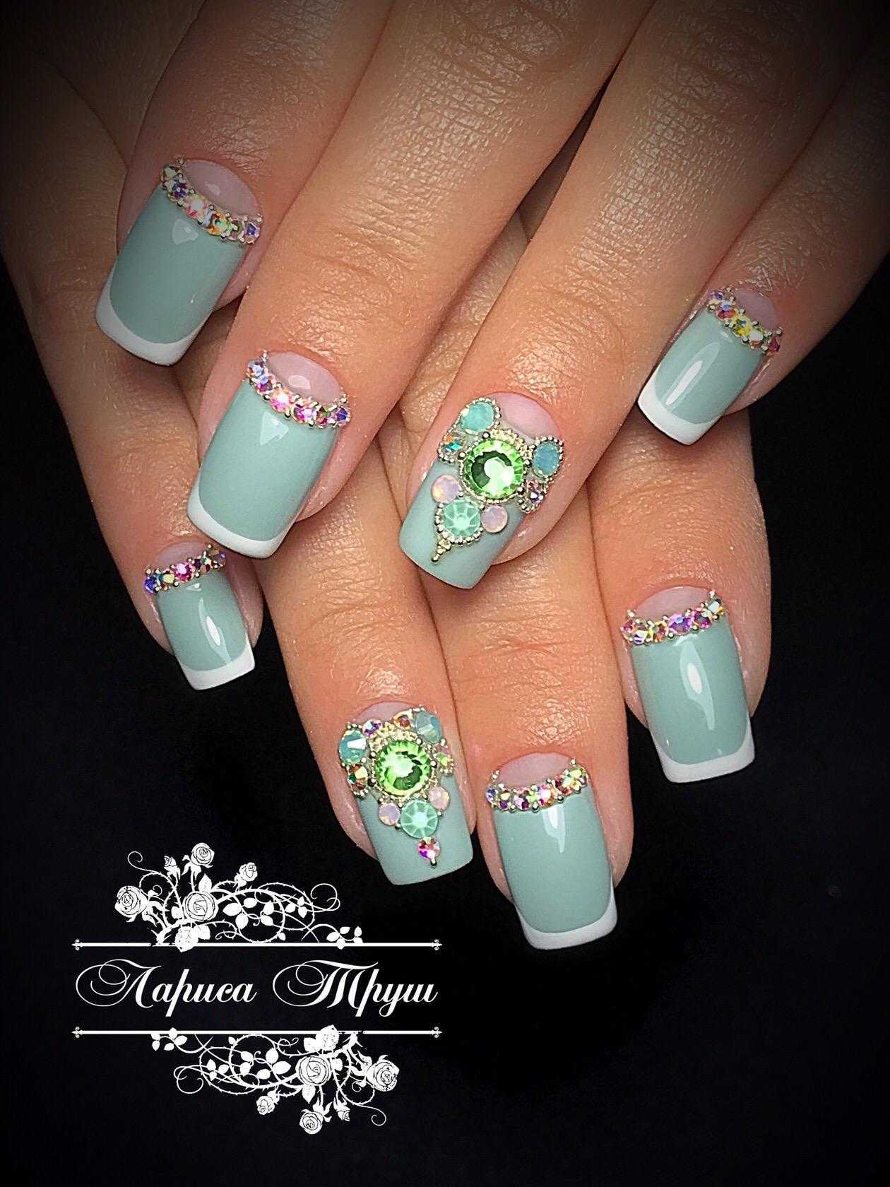 - кристаллы Сваровски – легендарные камни, которые представлены в разных цветовых решениях. Кристаллы Сваровски отличаются от обычных стразов непередаваемым сиянием и свечением, которое безумно красиво смотрится на ногтях невест. Инкрустация из стразов Сваровски удивительно красиво выглядит на миндальных и квадратных ногтях.