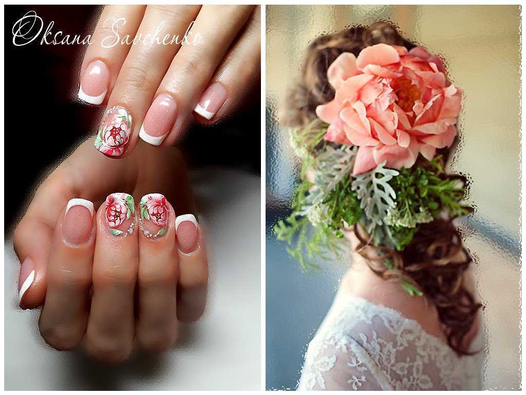 В тренде цветочный маникюр. Образ невесты всегда ассоциируется с цветком или распускающимся бутоном. Поэтому художники нейл-арта используют изображение цветов на розовом фоне с завидной регулярностью. Но акцент всегда на безымянном пальце, чтобы цветочное многообразие не перегружало нежный и воздушный образ невесты.
