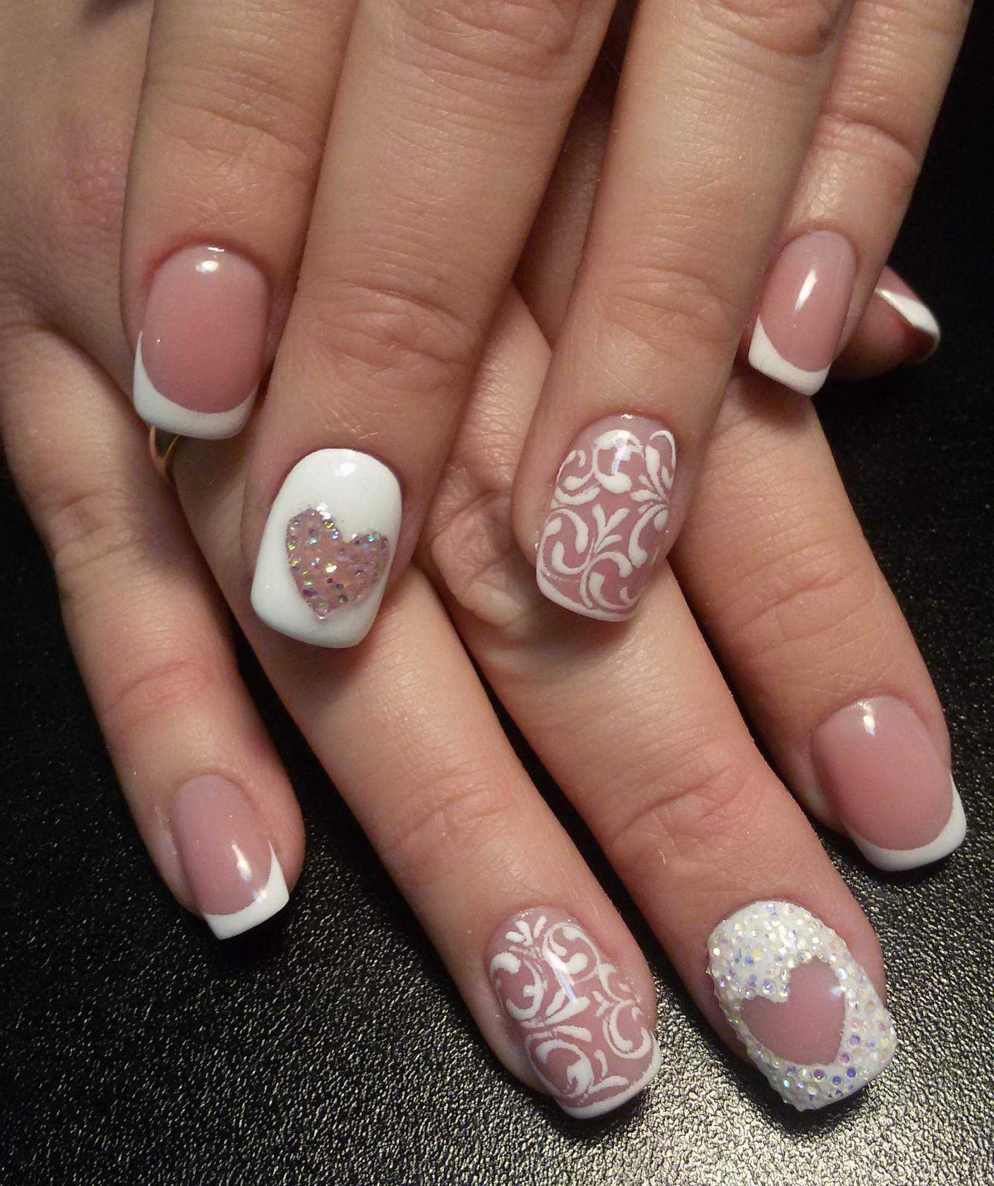 Невесты обожают такое украшение на ногти, ведь именно сердце символизирует любовь, а значит как нельзя кстати подходит для данного праздника. Профессионал своего дела сделает сердечко из чего угодно, замечательно выглядят варианты из бульонок, камней, лент, а также нарисованные.