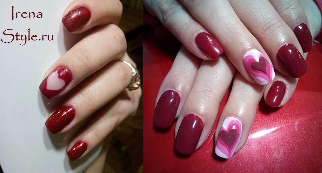Почему бы не сделать эффектный выразительный маникюр с сердечком на безымянном пальце? Для него можно выбрать несколько цветов: