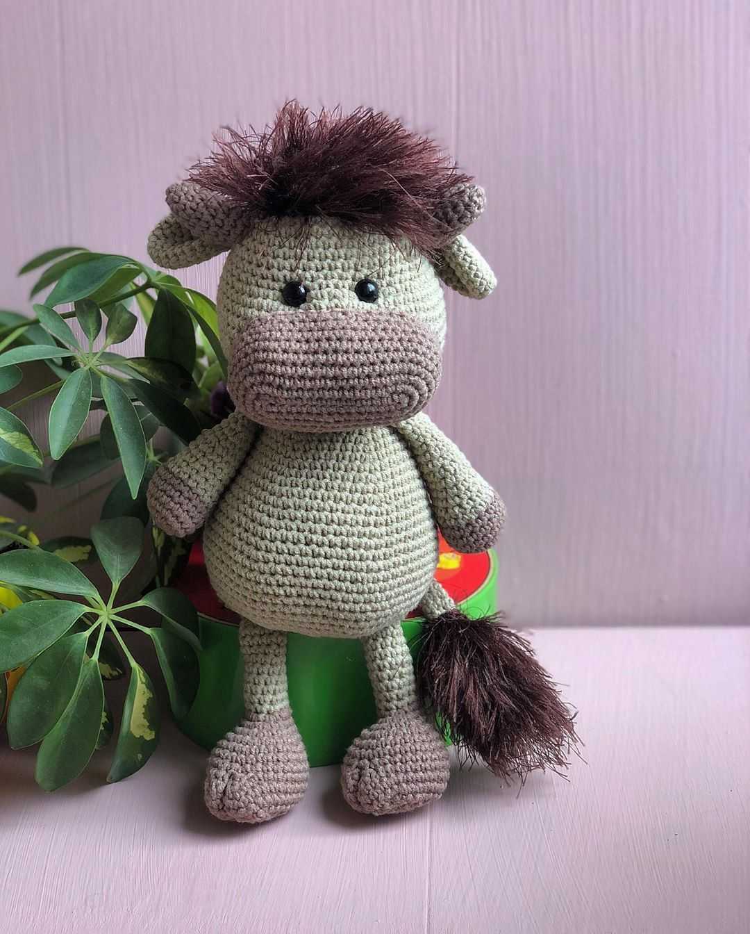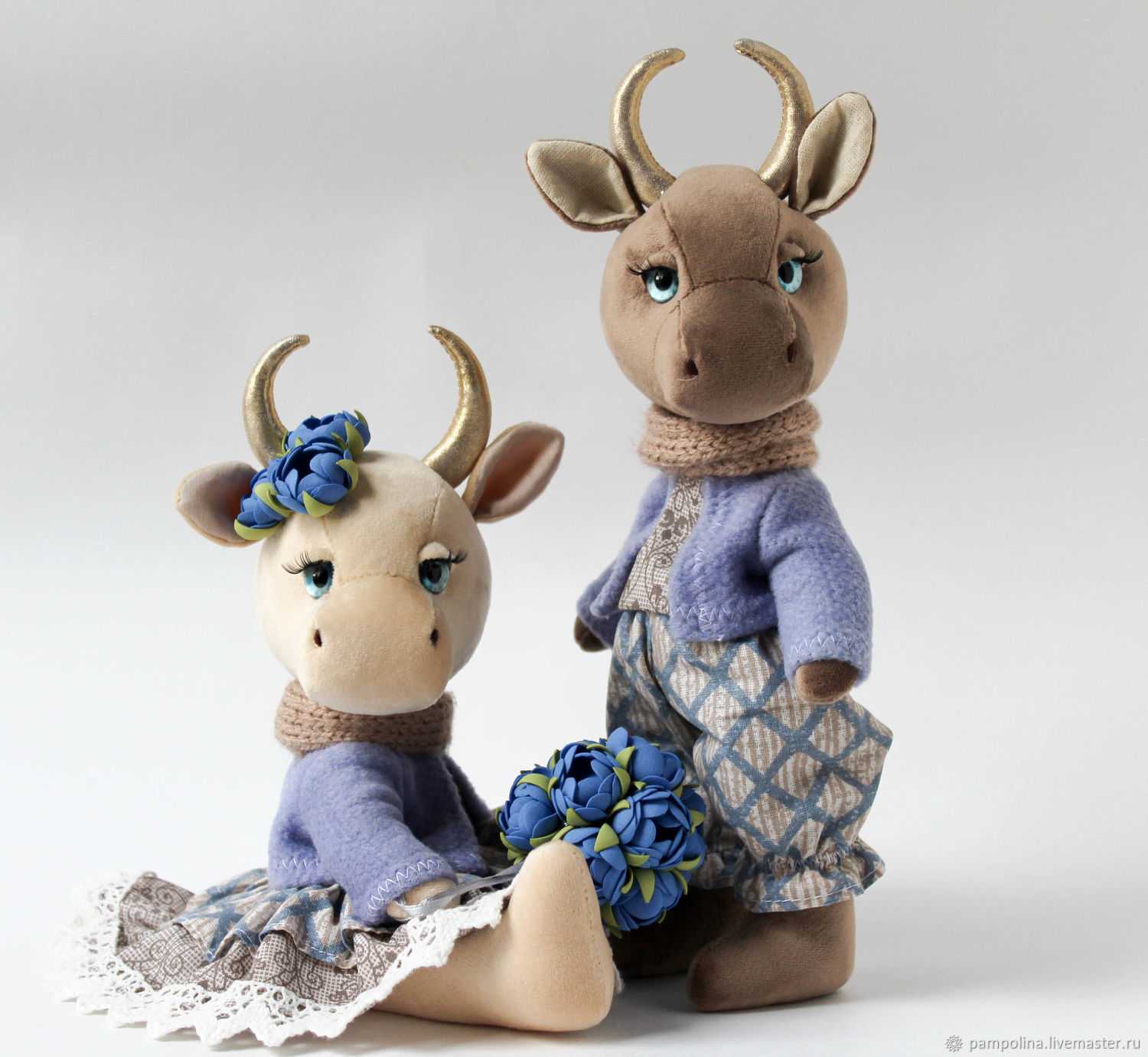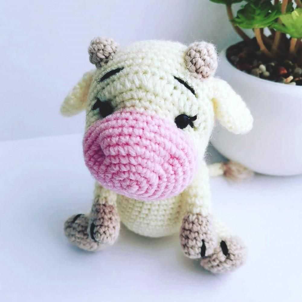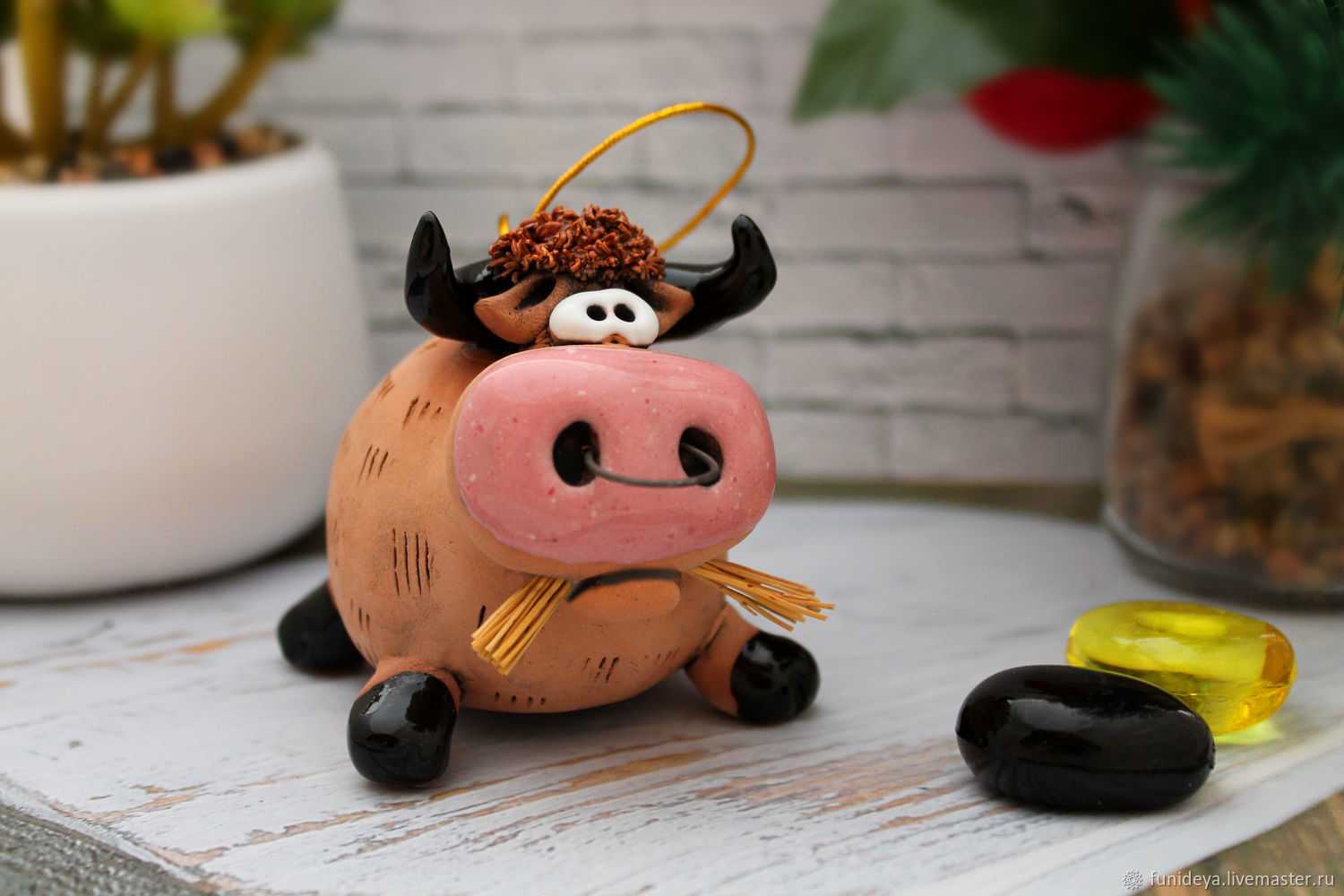 В сфере рукоделия техника создания игрушек в стиле амигуруми считается очень популярной, поэтому вязаная крючком игрушка в виде коровы или быка станет отличным решением для новогодней поделки. Такой вид творчества, конечно, потребует от вас умения вязать, а процесс изготовления поделки займёт определённое время, но в результате вы получите массу положительных эмоций и создадите уникальный в своём роде талисман.