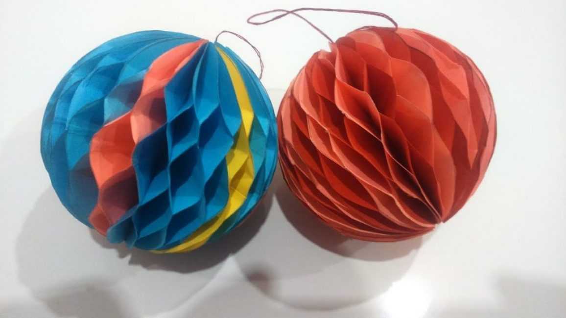 Шары всегда считались универсальными елочными украшениями. Их можно сделать из картона или цветной бумаги. В итоге они получаются не менее эффектными, нежели покупные.