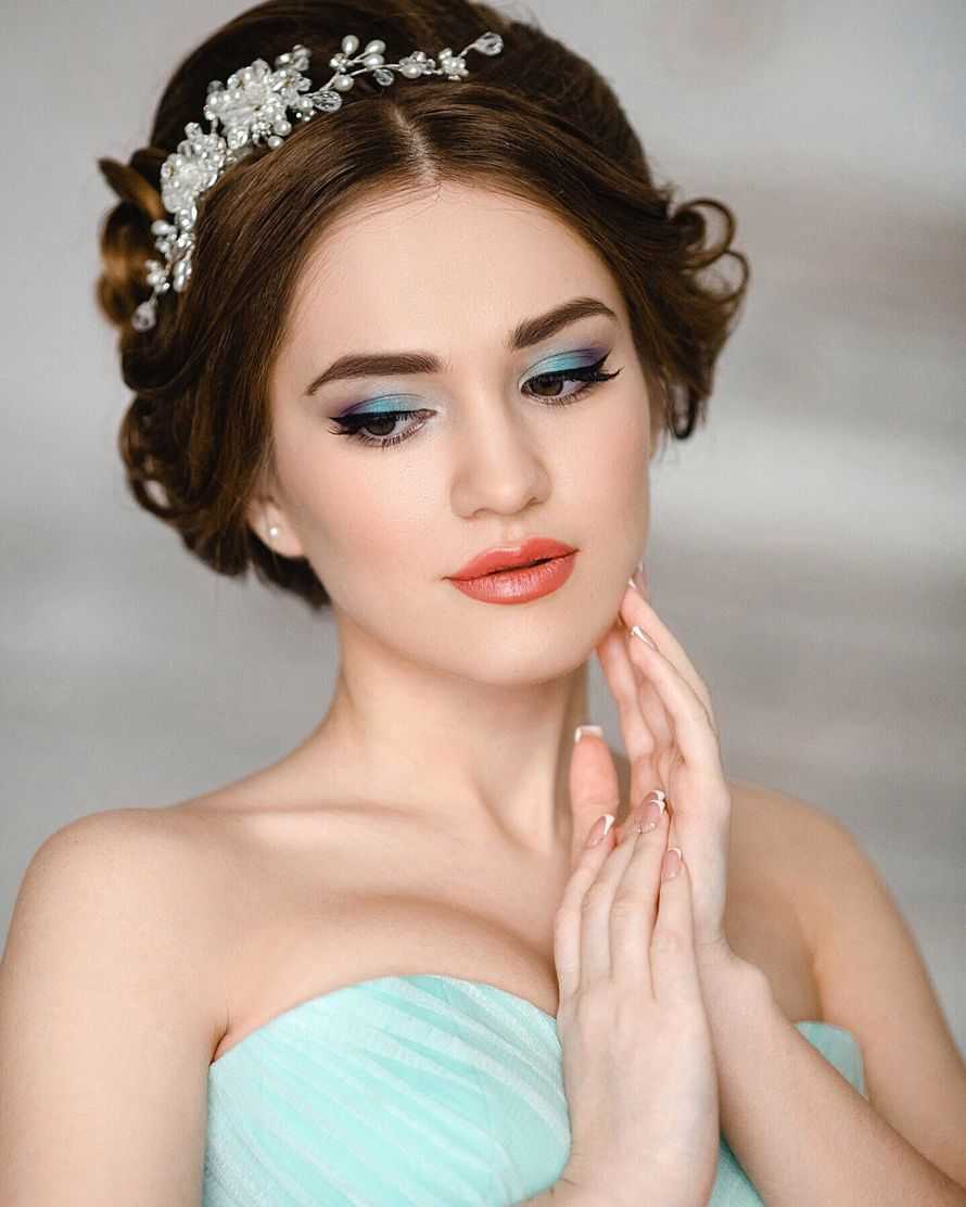 Важно! Стилисты к синему вечернему наряду рекомендуют делать макияж в стиле смоки-айс в серо-синей гамме. А вот прическа здесь должна быть максимально простой