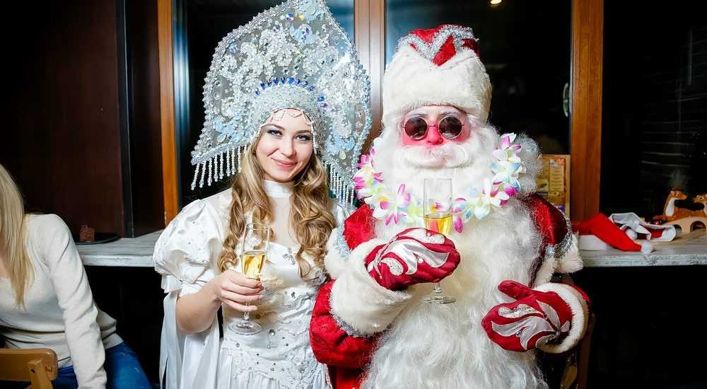 Сказочные образы Снегурки и Дедушки Мороза будут самыми яркими на новогодней вечеринке для взрослых.