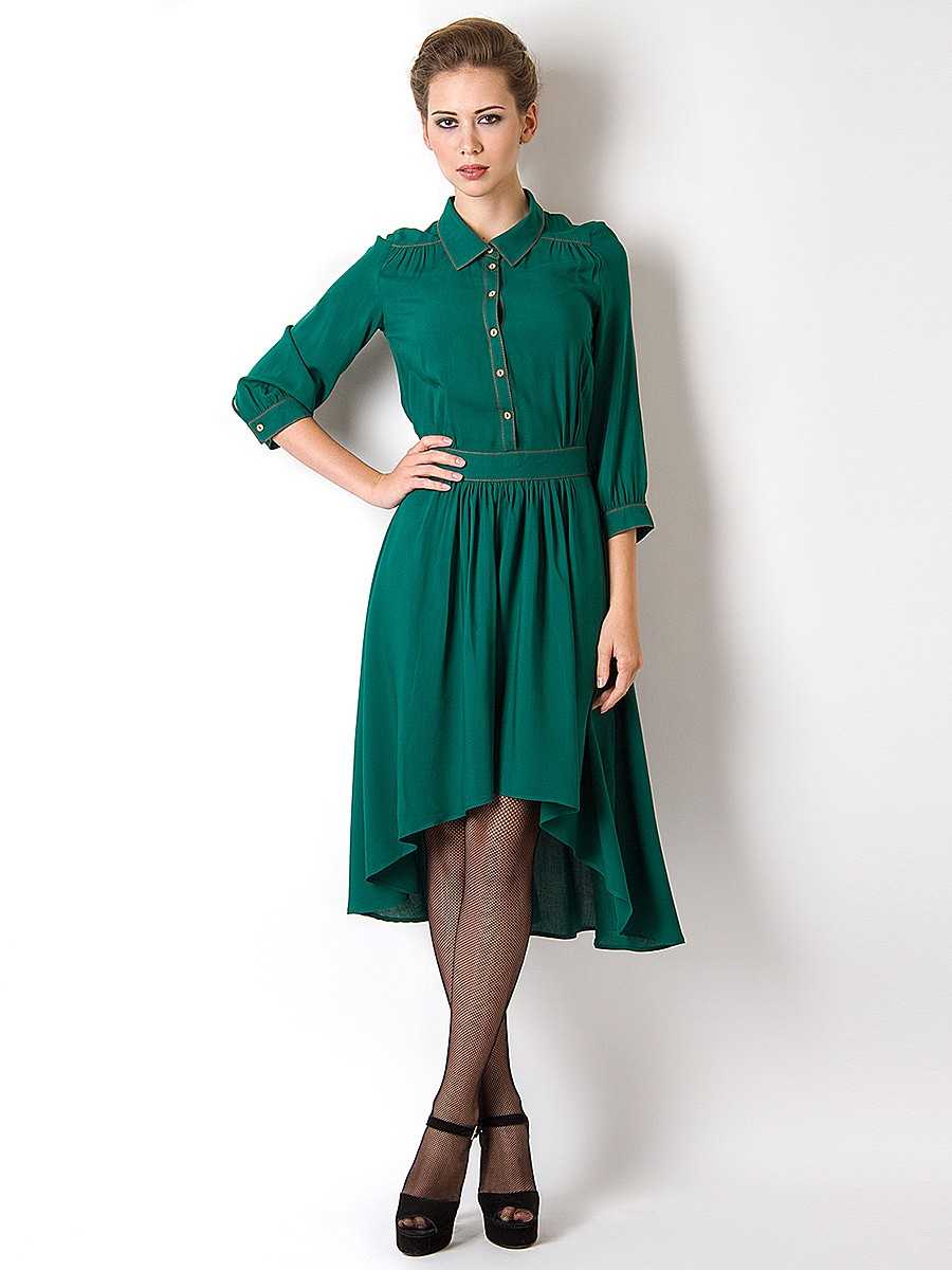 Для повседневных образов подходят наряды всех оттенков и фасонов. Конечно, исключение составляют длинные изумрудные платья с обилием отделки и украшений, которые смотрятся богато и подходят больше для вечерних мероприятий.